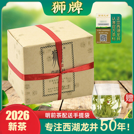 2026新茶预售 狮牌西湖龙井茶牛皮纸绿茶一级明前250克
