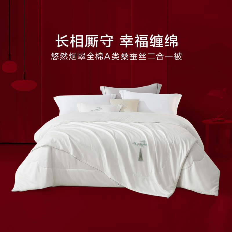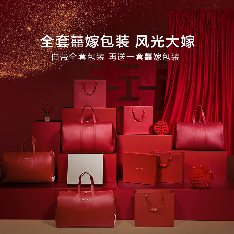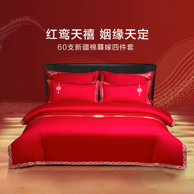 罗莱家纺结婚喜被陪嫁红色四件套蚕丝被鹅绒被婚庆床上用品套组