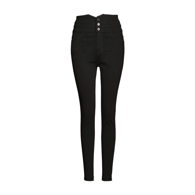 sp68三粒扣高腰分割腰头小脚魔术裤2025春秋新品黑色打底裤女外穿