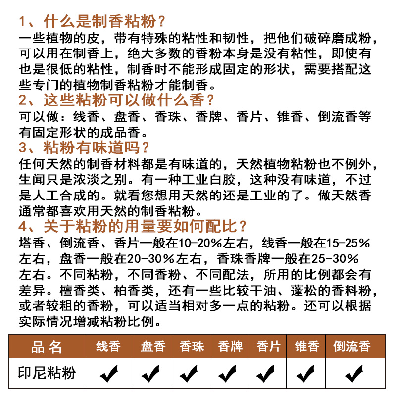 天然印尼楠木粘粉制香线香塔香盘香香粉另有榆树皮沉香檀香安息香