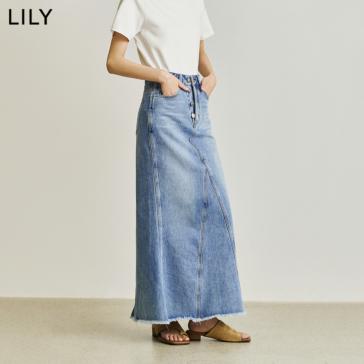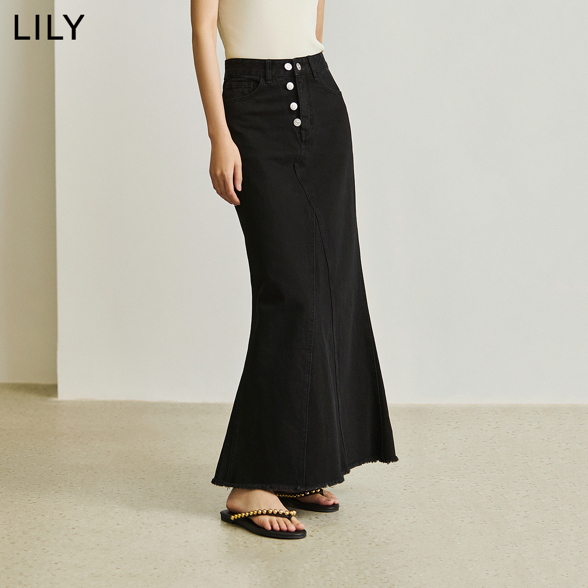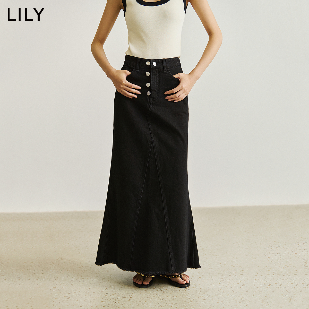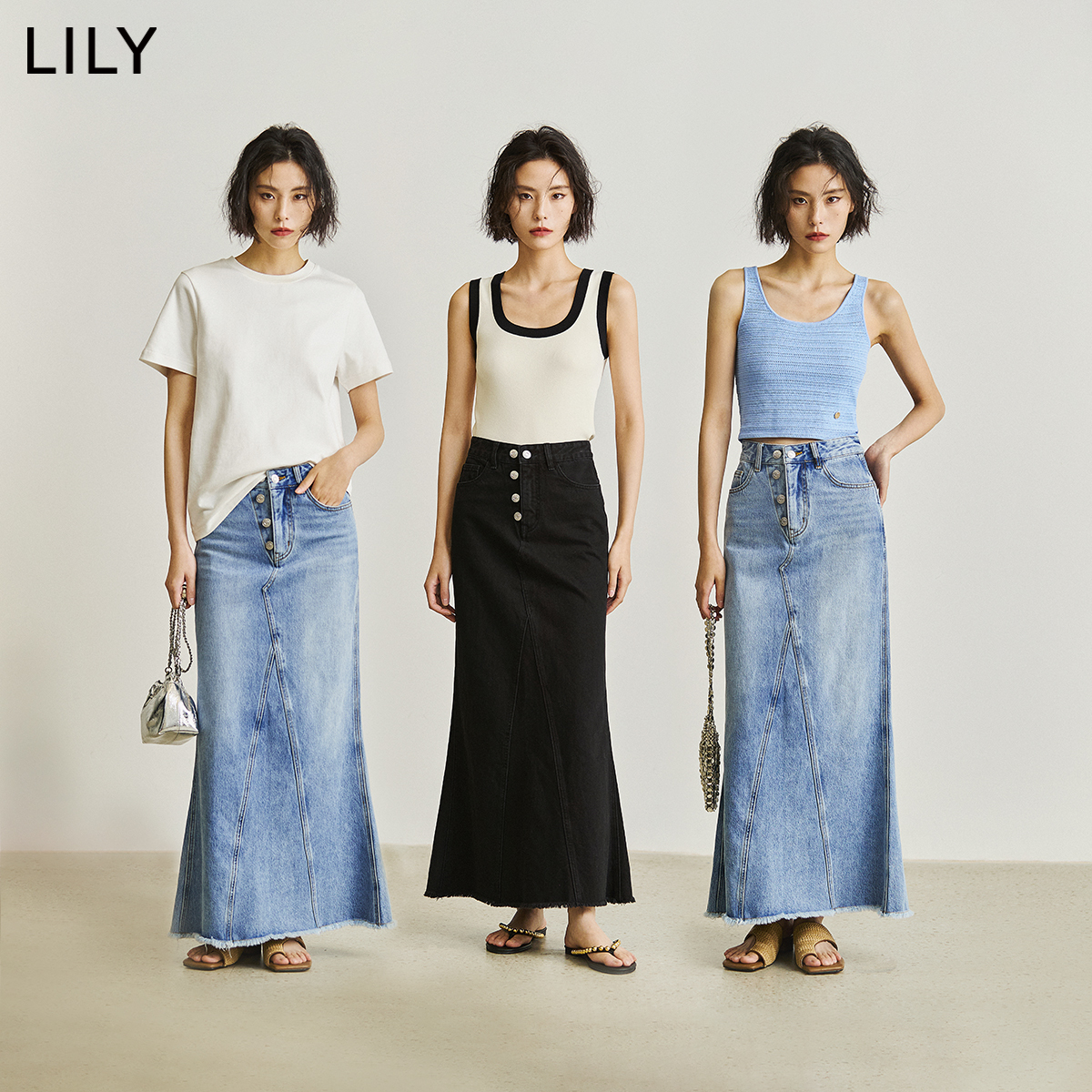 【商场同款】LILY2024夏新款女装全棉牛仔复古修身鱼尾裙半身裙女