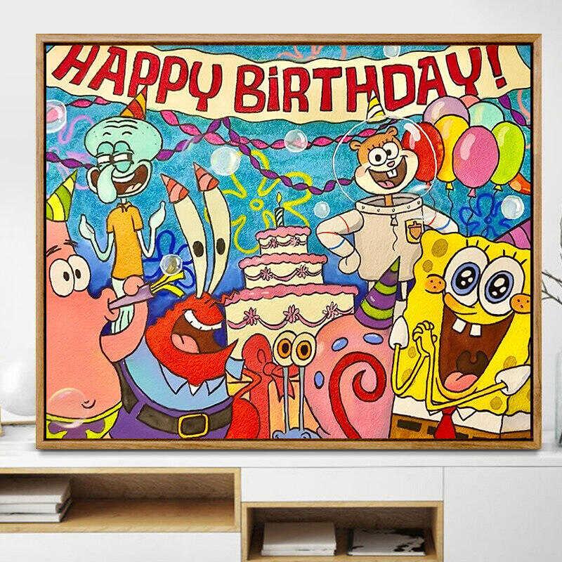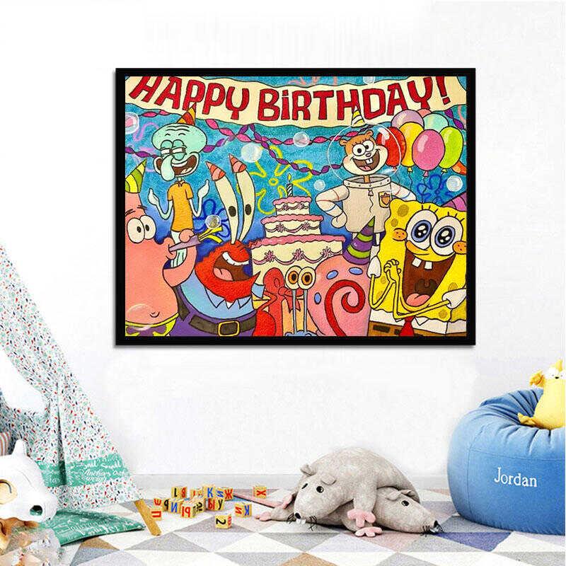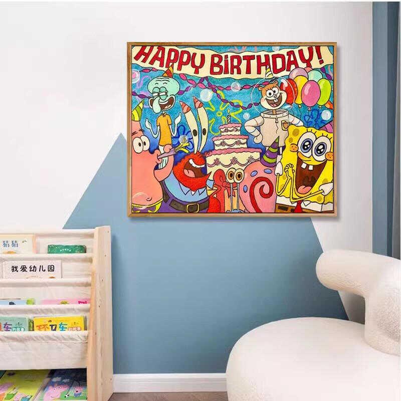 儿童钻石画 画海绵宝宝全家福手工贴钻十字绣客厅卧室新款满钻儿