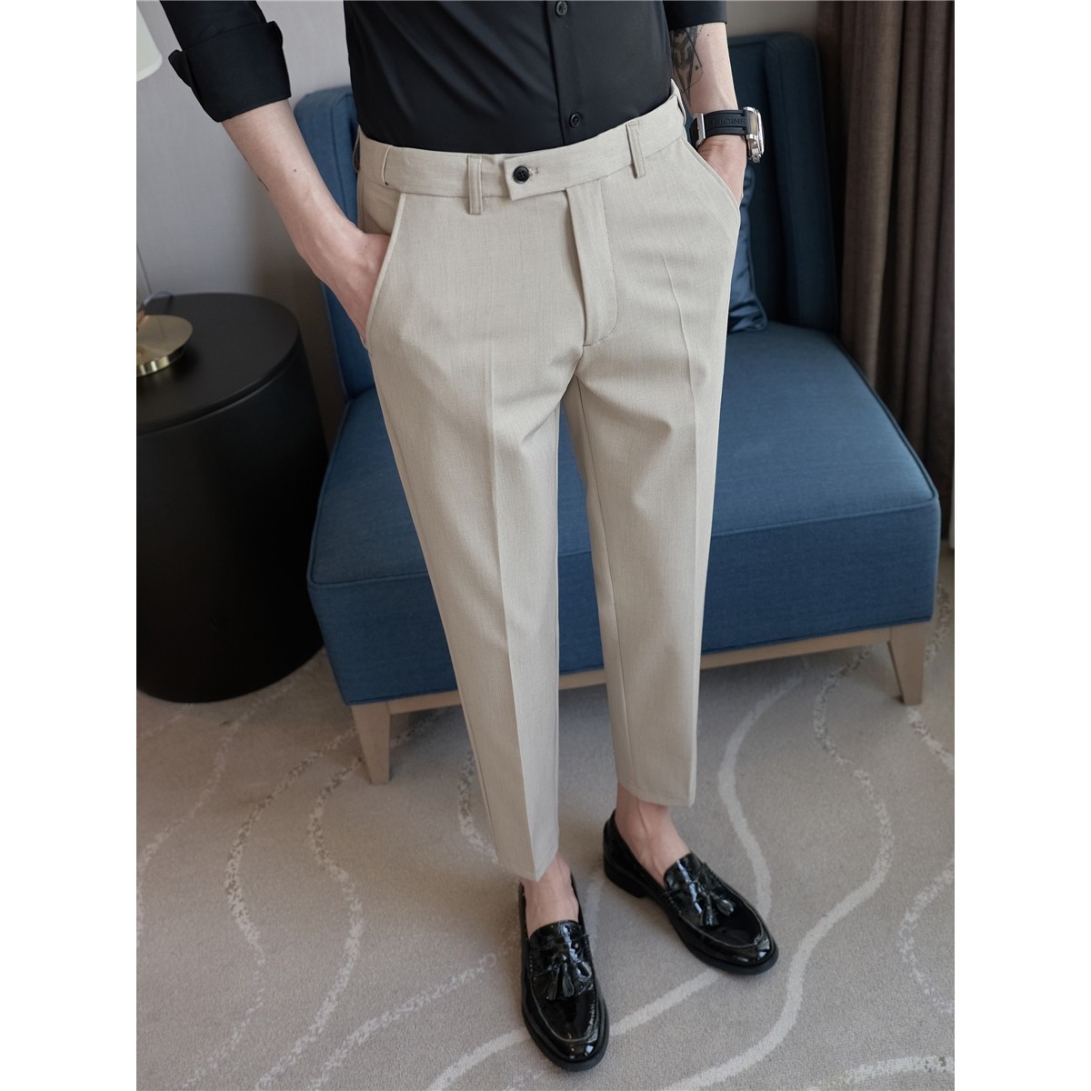 2025男士隐形松紧腰休闲九分西裤修身小脚高级感垂感痞帅西装男裤