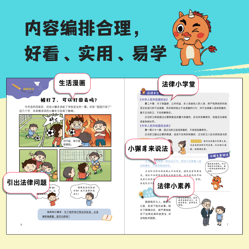 小学生实用法律启蒙6-12岁幼儿童法律科普启蒙认知绘本小学生三四五六年级课外阅读漫画书让孩子学会用法律保护自己培养自救能力