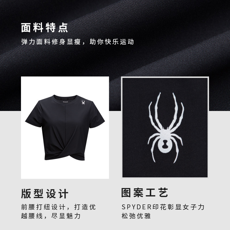 SPYDER蜘蛛春夏女TRAINING弹力修身显瘦休闲圆领短袖T恤24CS444W