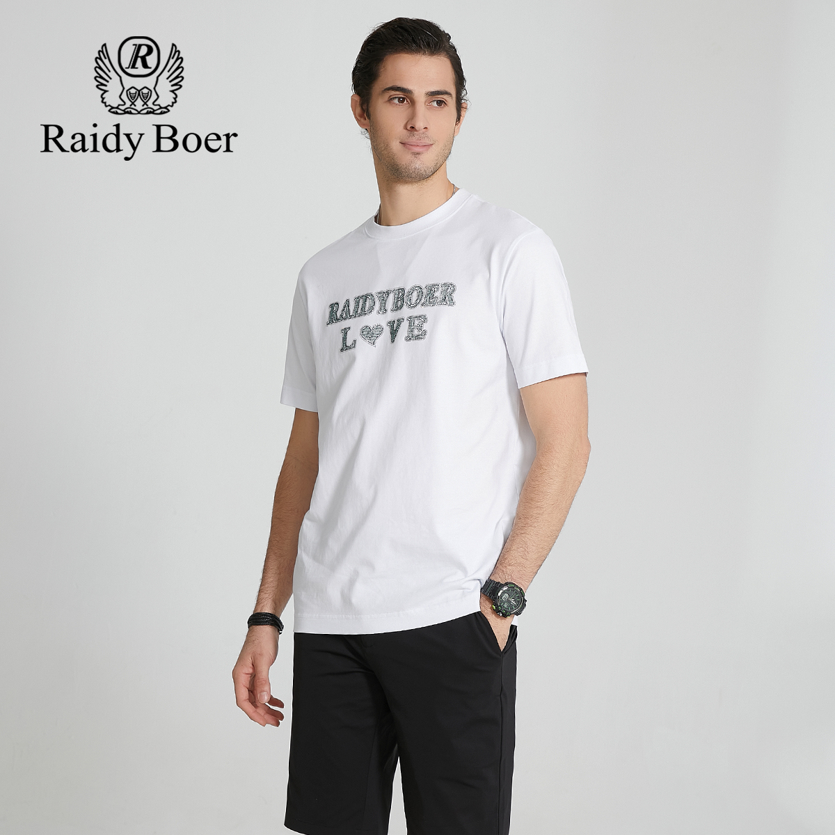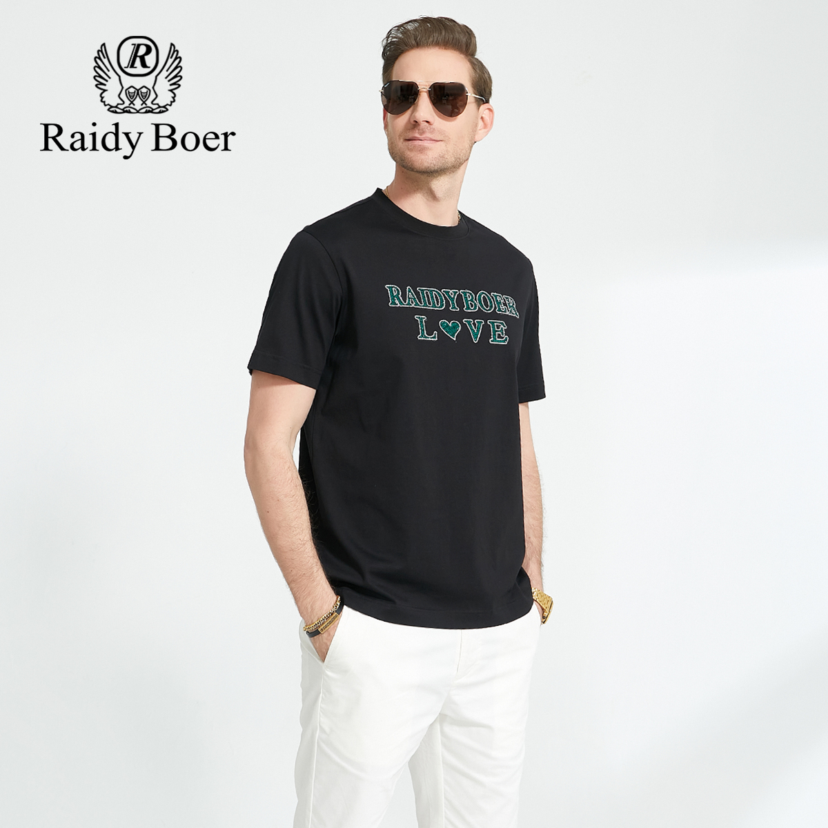 雷迪波尔男装短袖T恤夏季新款宽松版圆领时尚潮流纯棉上衣男