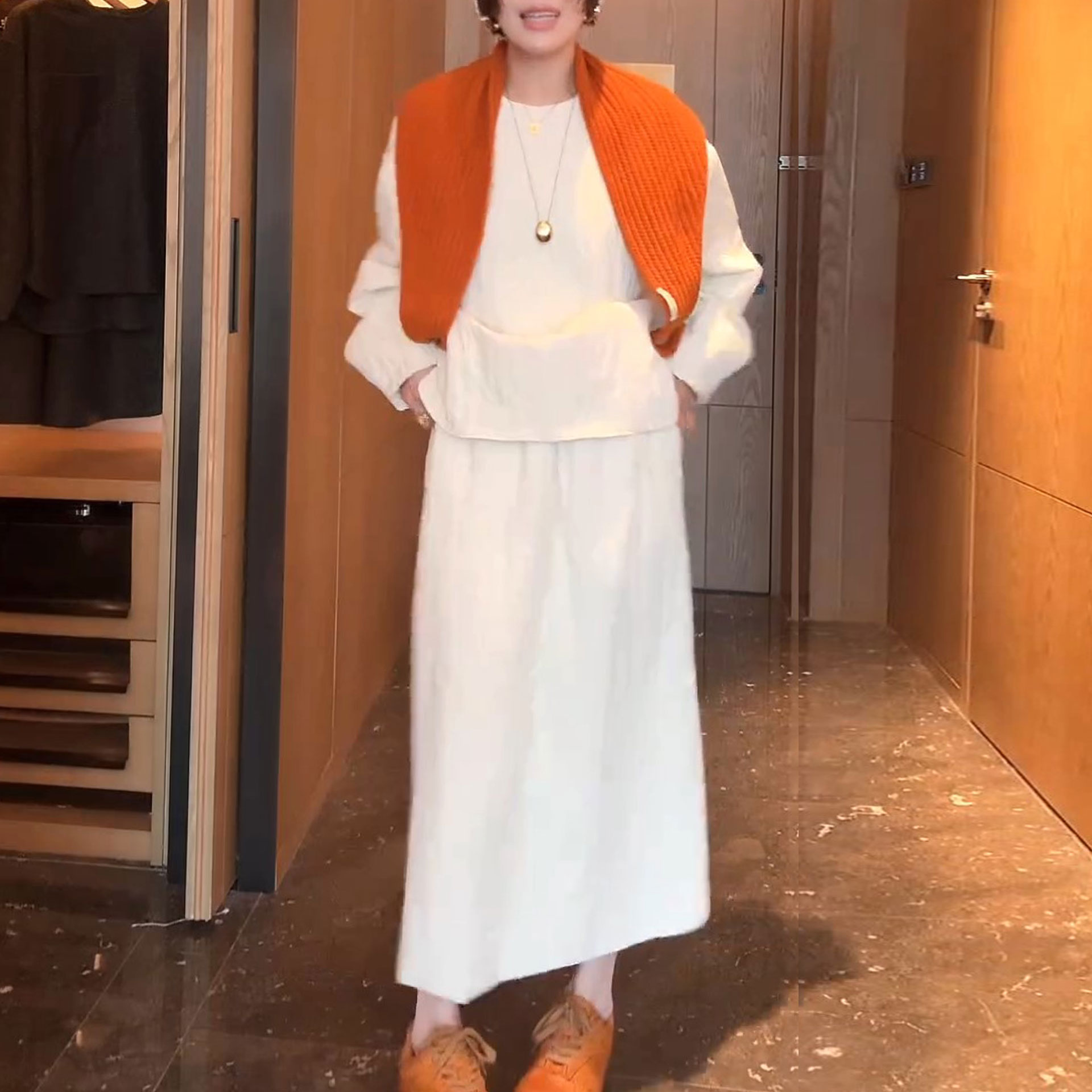 韩版时尚休闲宽松上衣半身裙子2025秋季新款气质百搭纯色两件套装