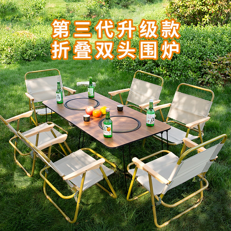 围炉煮茶烧烤炉火锅一体桌子套装家用木炭烤肉户外便携式折叠碳炉