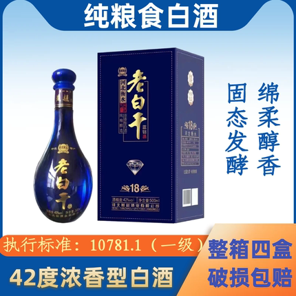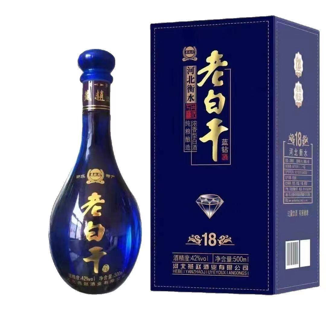 42度蓝钻纯粮食白酒整箱4盒装浓香型固态发酵老白干礼盒装