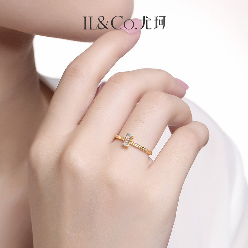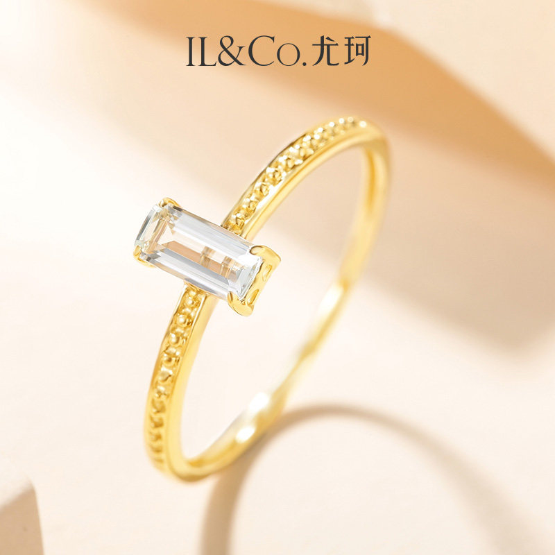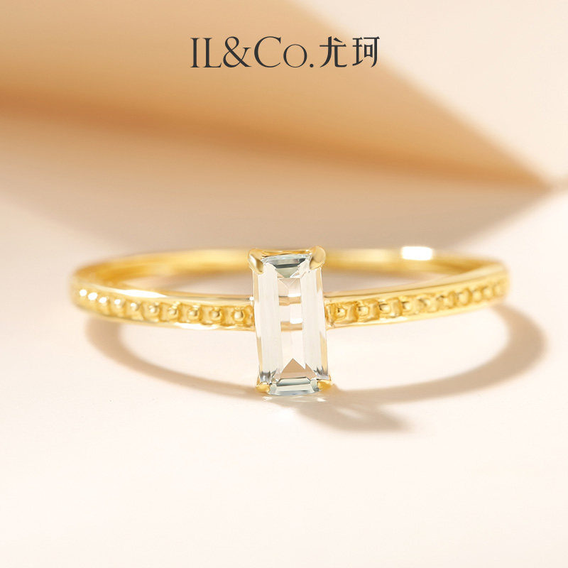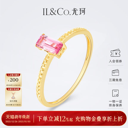 ILCO尤珂 天然粉红碧玺戒指海蓝宝18K金方形滚珠边镶彩金托帕石女