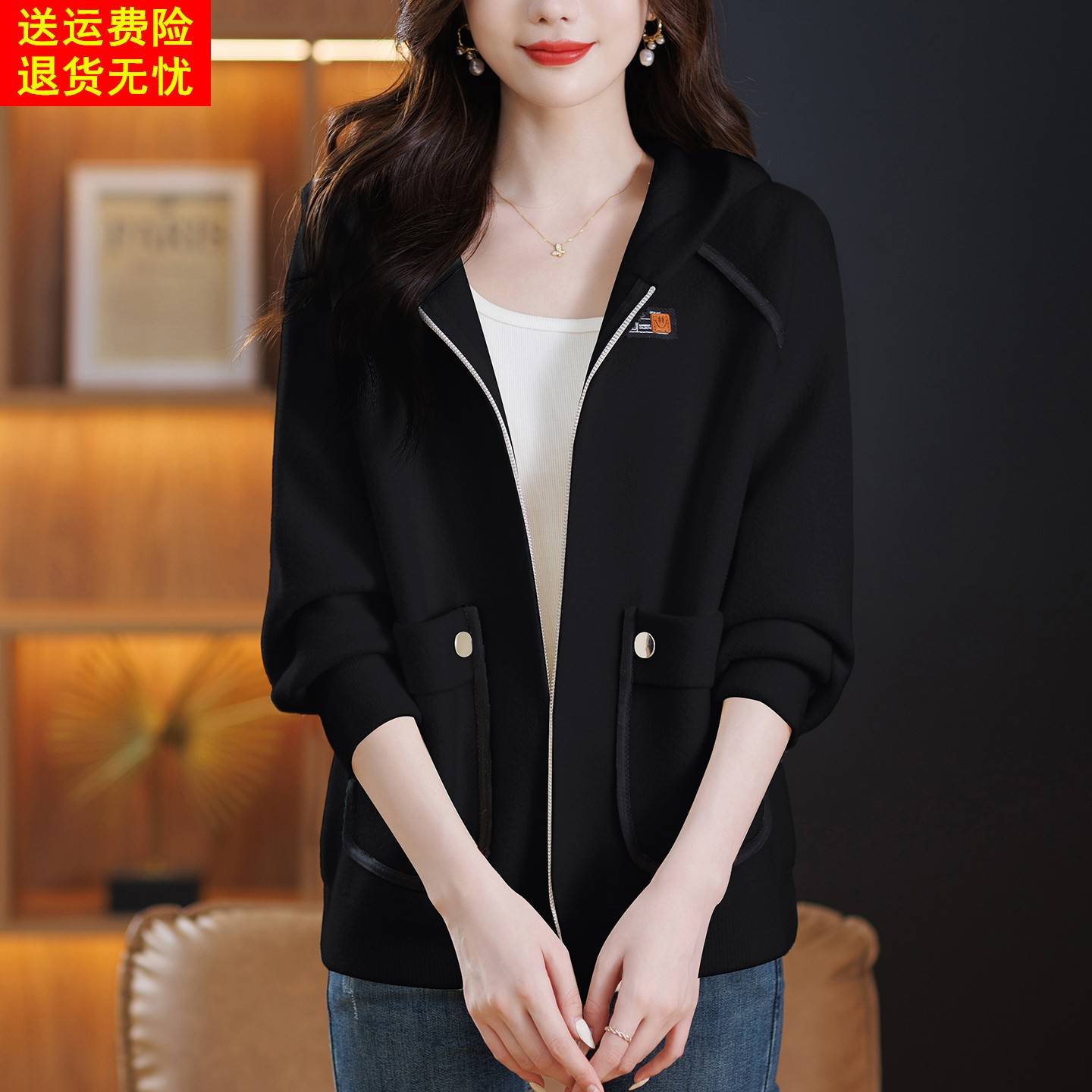 高级感上衣休闲时尚洋气妈妈秋装毛呢外套2025新款大码开衫女连帽