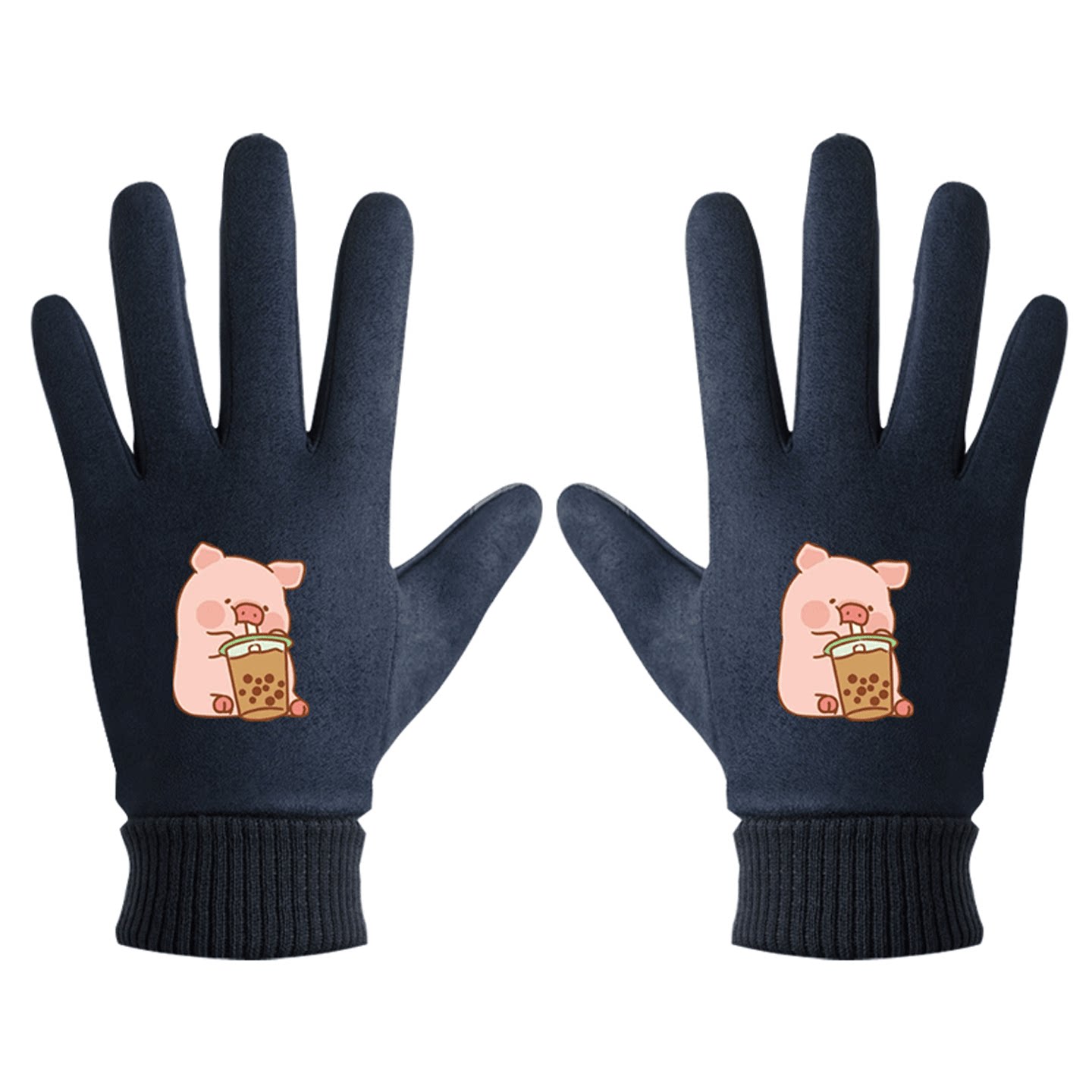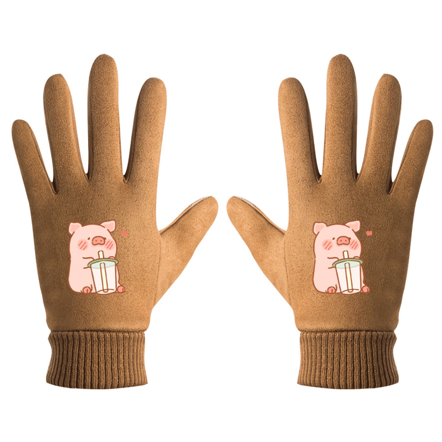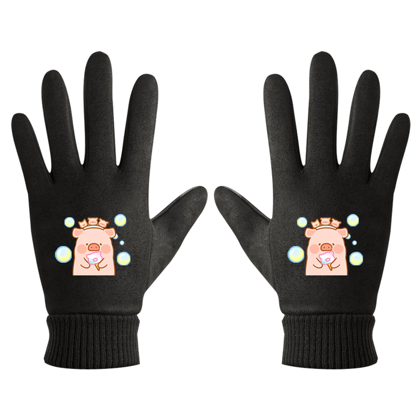 LULU猪卡通粉红小猪印花周边男女情侣秋冬休闲百搭冬保暖分指手套