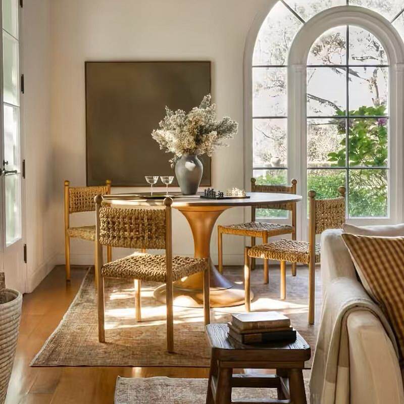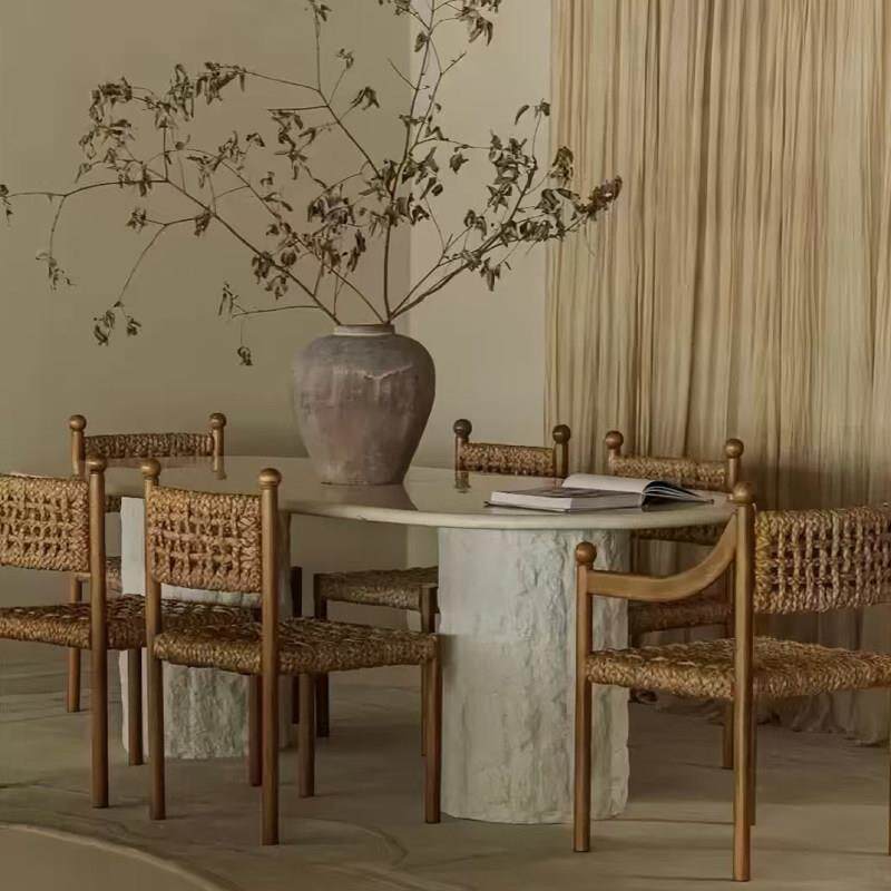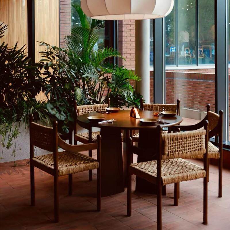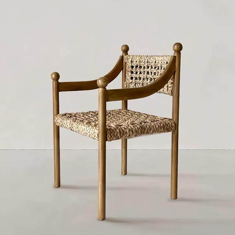 中古实木编藤餐椅覆古风民宿高级设计师款艺术扶手餐椅休闲编藤椅