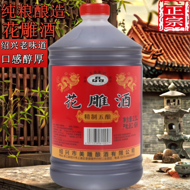 正宗绍兴特产黄酒自饮泡阿胶花雕酒烹饪炒菜去腥调味家用桶装料酒