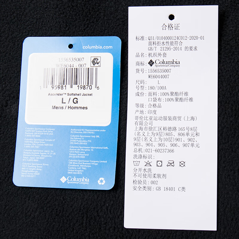 2025秋冬新款哥伦比亚户外男拒水防风加绒保暖休闲软壳衣WE6044