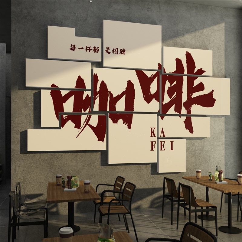 咖啡厅馆墙面装饰糖水奶茶店墙壁布置网红拍照区打卡背景贴纸挂画