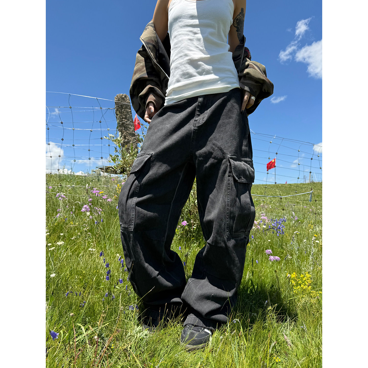 F383 美式复古工装牛仔裤宽松直筒水洗拖地阔腿街头vibe风裤子ins