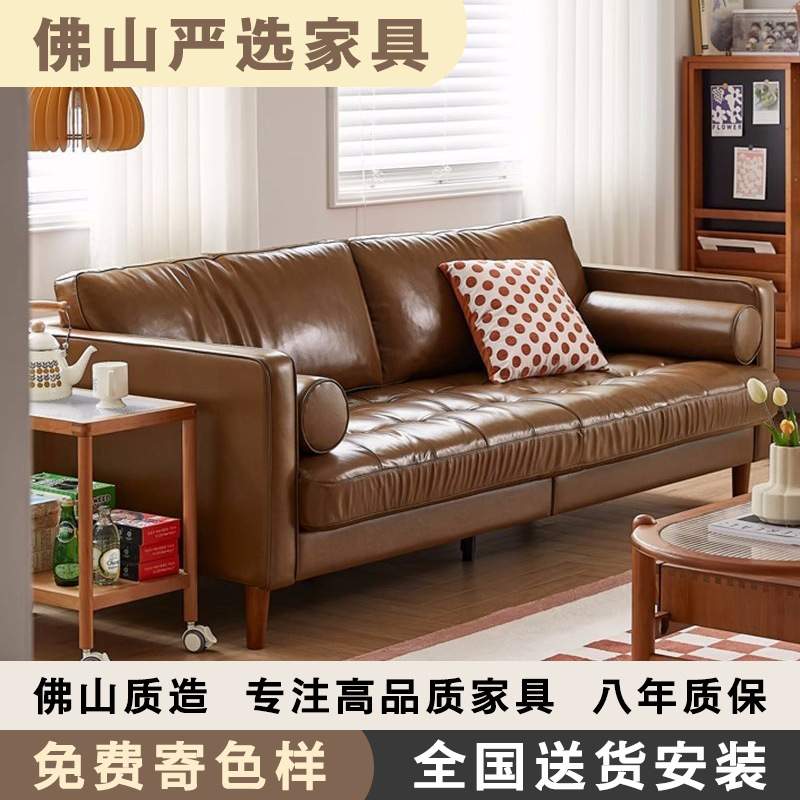 真皮沙发油蜡北欧简约客厅小户型组合沙发美式复古风表情皮艺沙发