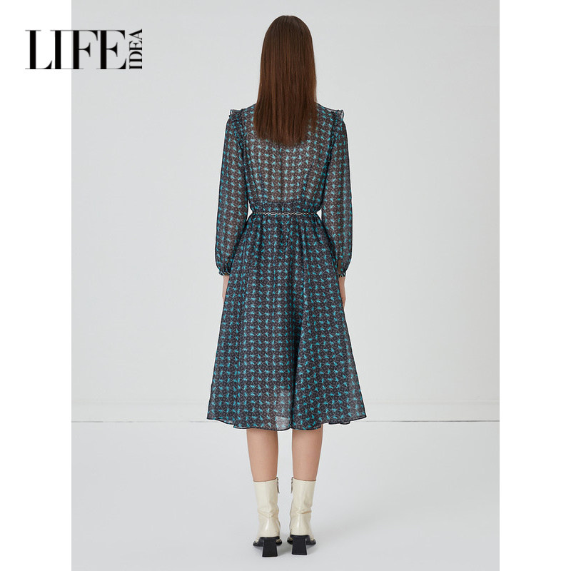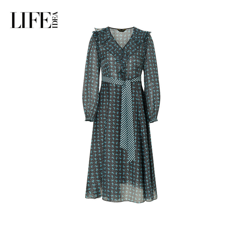 莱芙艾迪儿浪漫荷叶边法式连衣裙秋季印花气质裙子1E3L94014