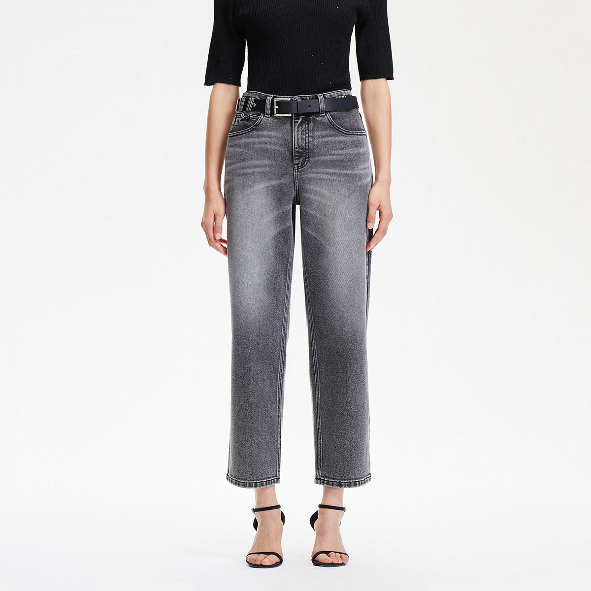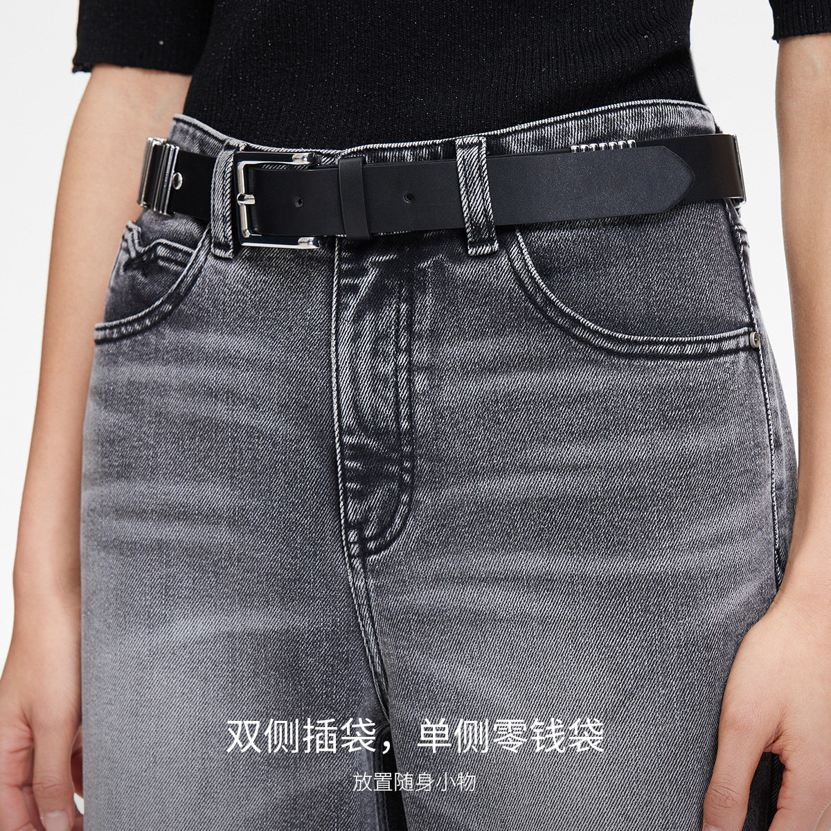 Vero Moda牛仔裤女2025夏季新款腰带装饰复古磨白七分裤32526I001