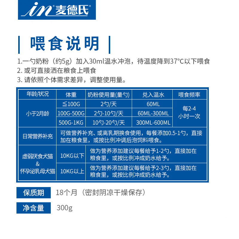 麦德氏高钙低敏羊奶粉新生幼犬成犬幼猫补钙宠物狗狗猫咪通用奶粉