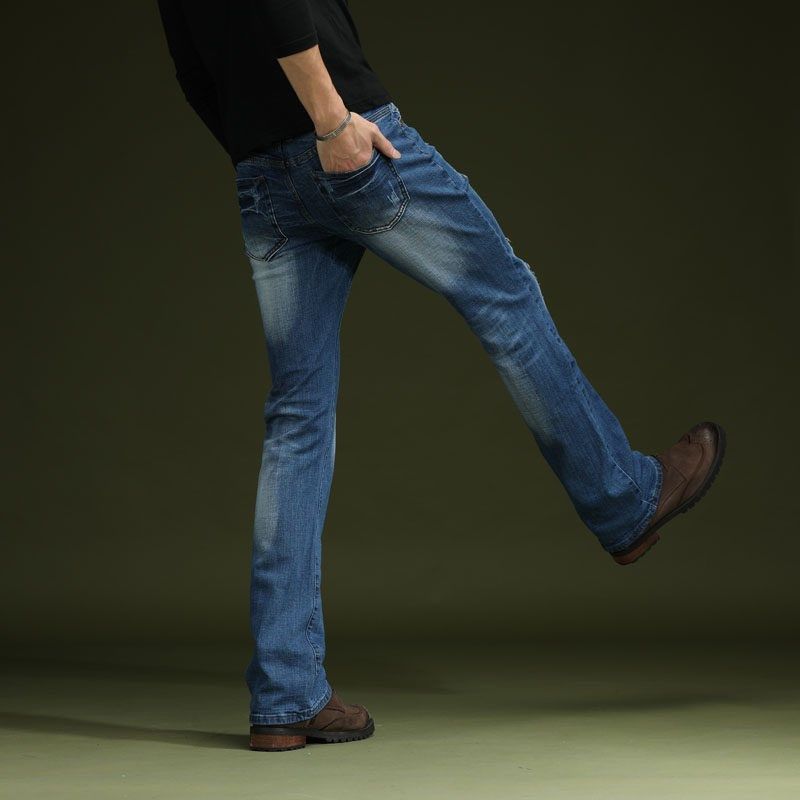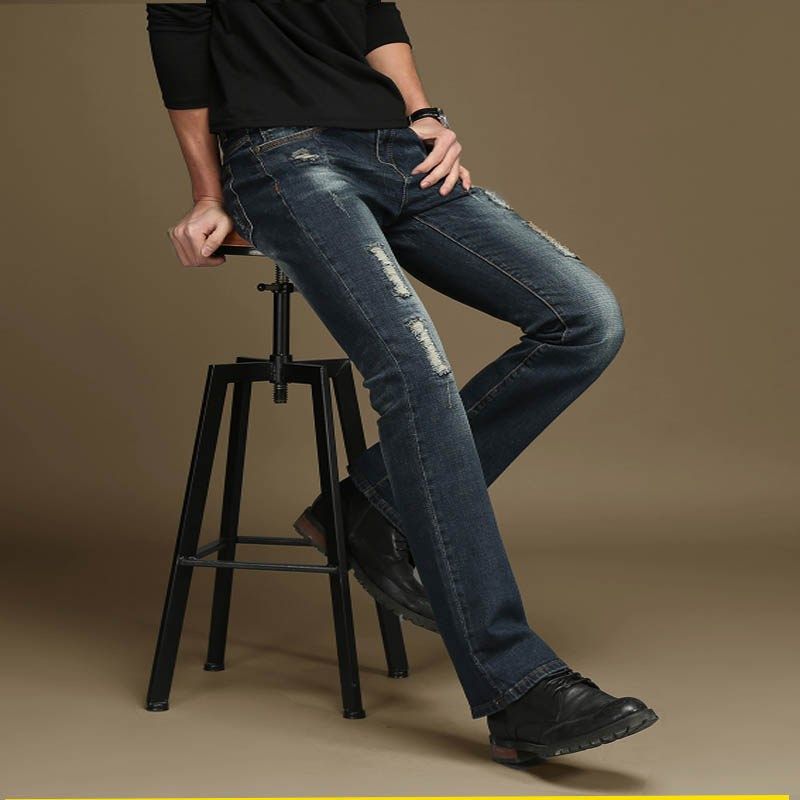 22春秋男装 韩版潮弹力修身破洞微喇叭牛仔长裤 男式喇叭牛仔裤