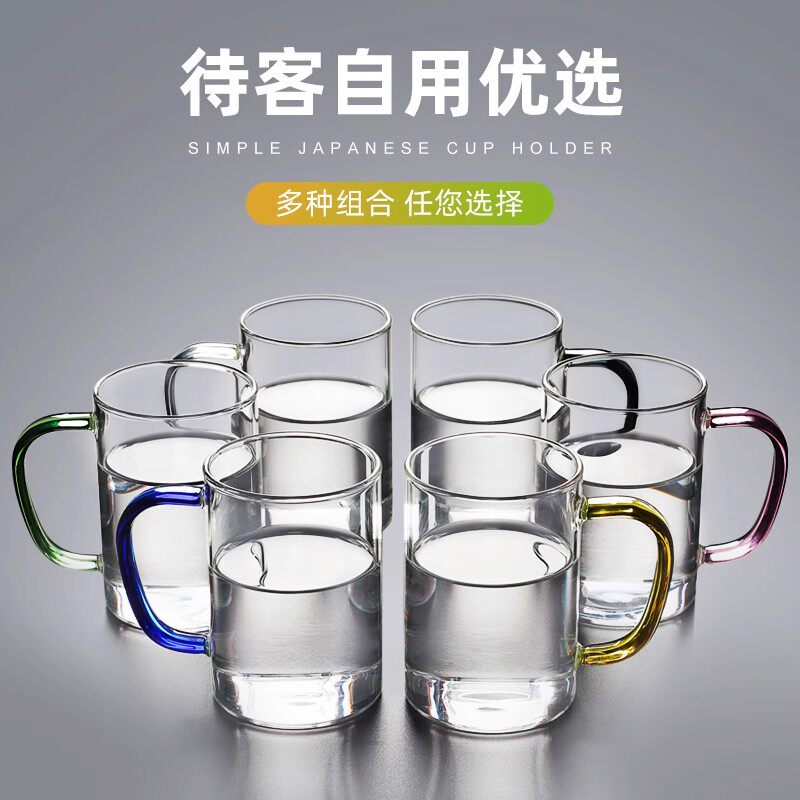 玻璃杯套装带把家用待客杯泡茶杯