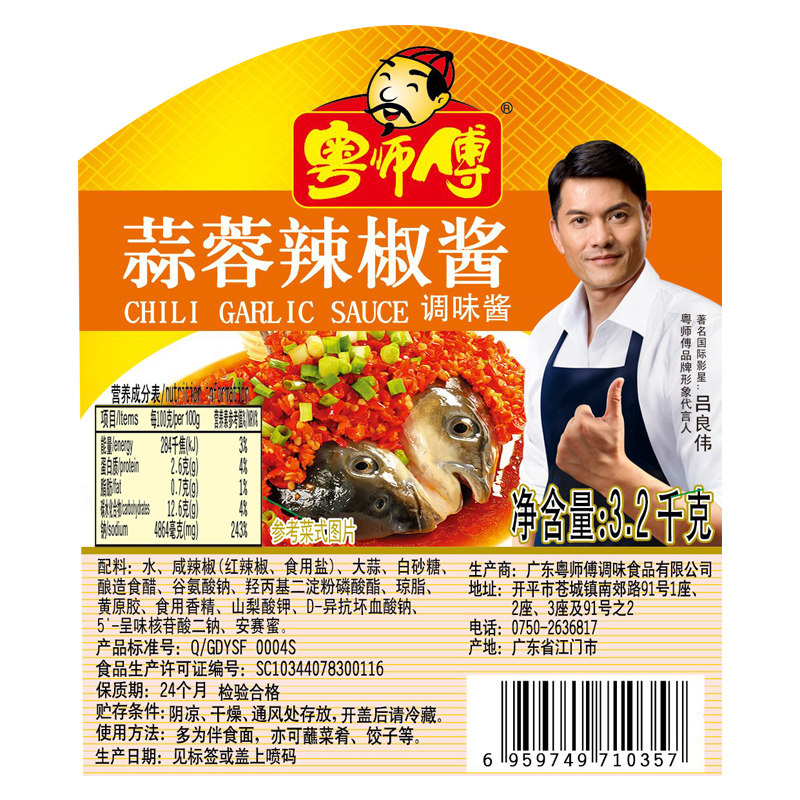 江门粤师傅蒜蓉辣椒酱3.2kg桶装