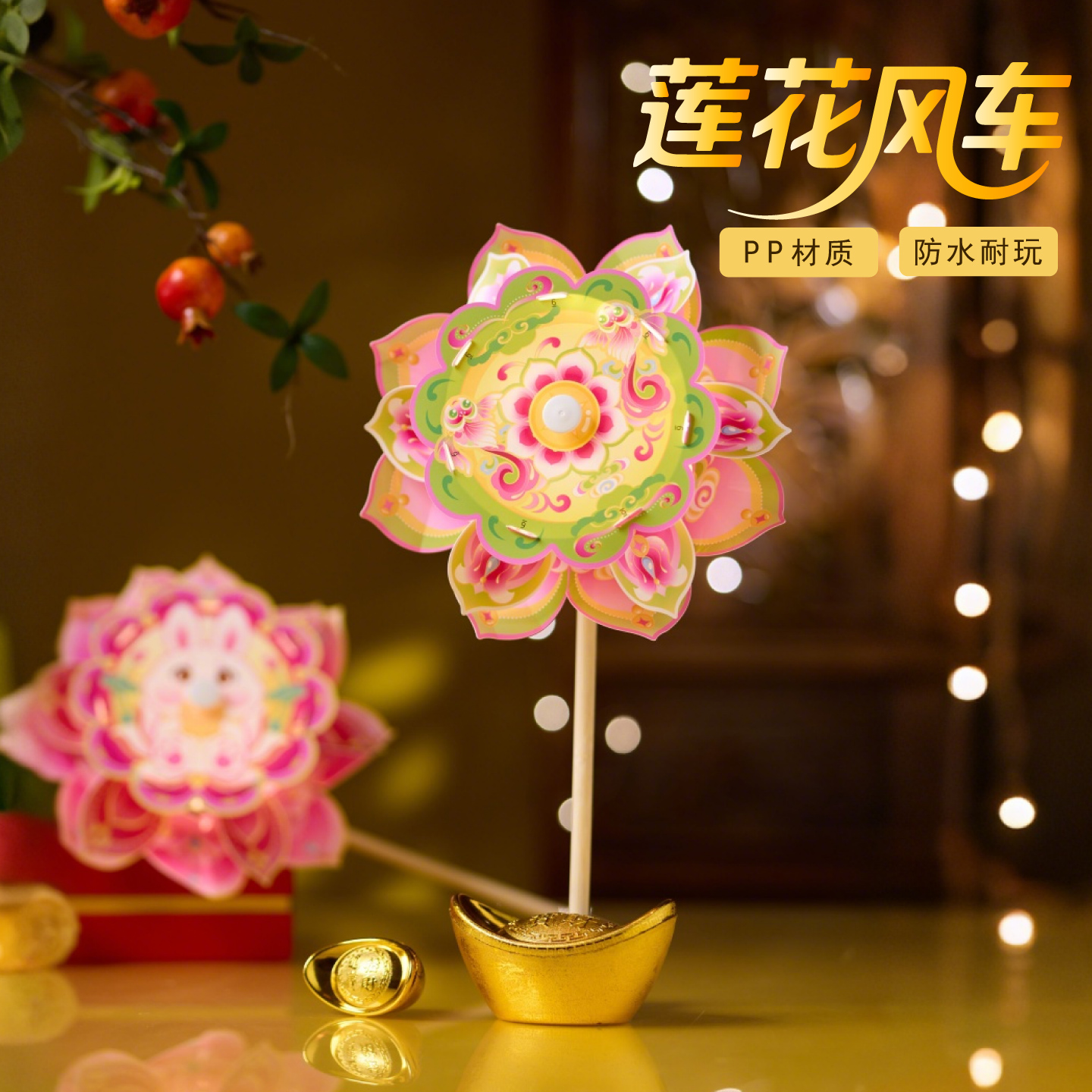 中秋节莲花风车灯笼儿童手工diy制作材料古风玉兔子花灯旋转玩具