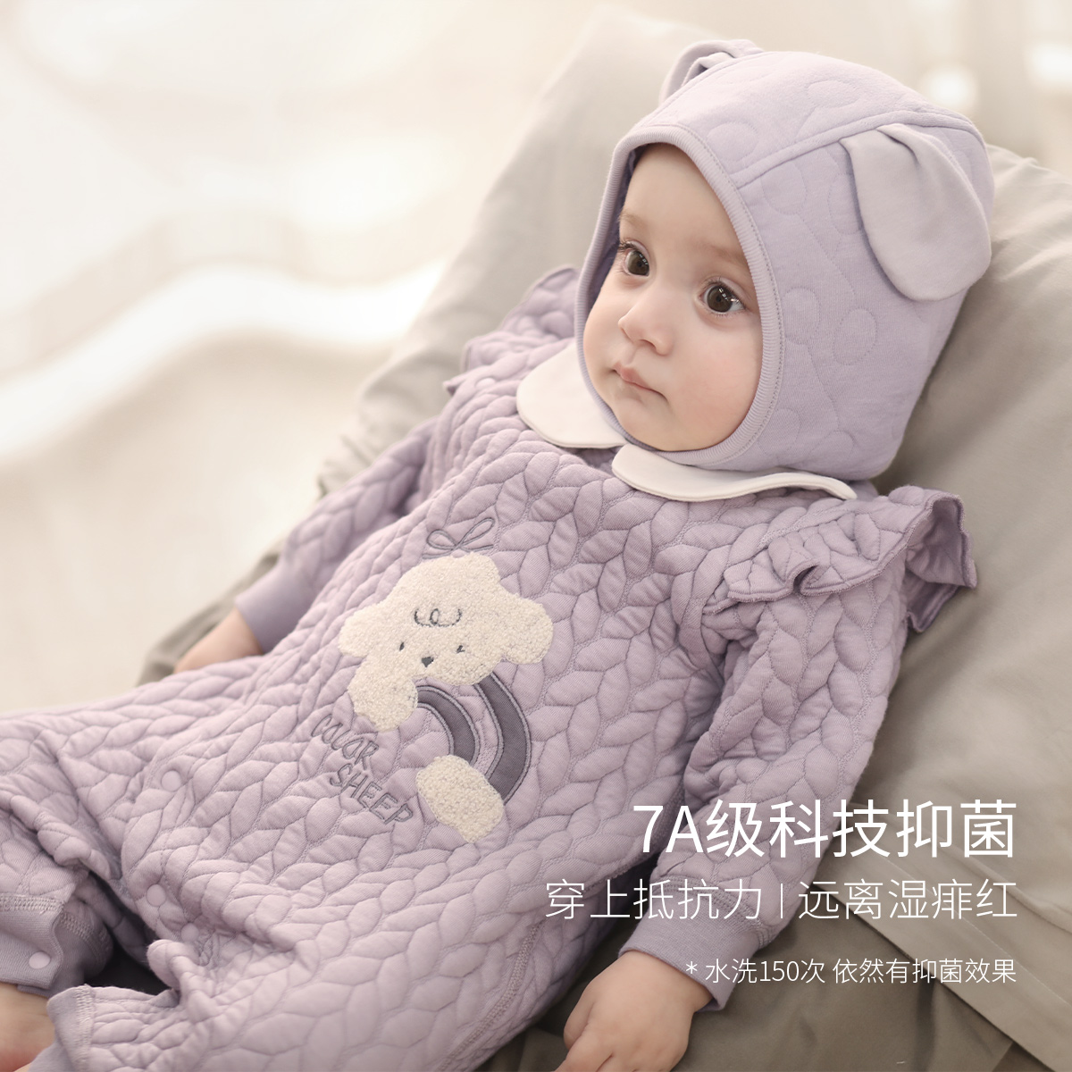 女宝宝连体衣秋冬季初生儿超萌可爱哈衣夹丝加厚保暖新生婴儿衣服