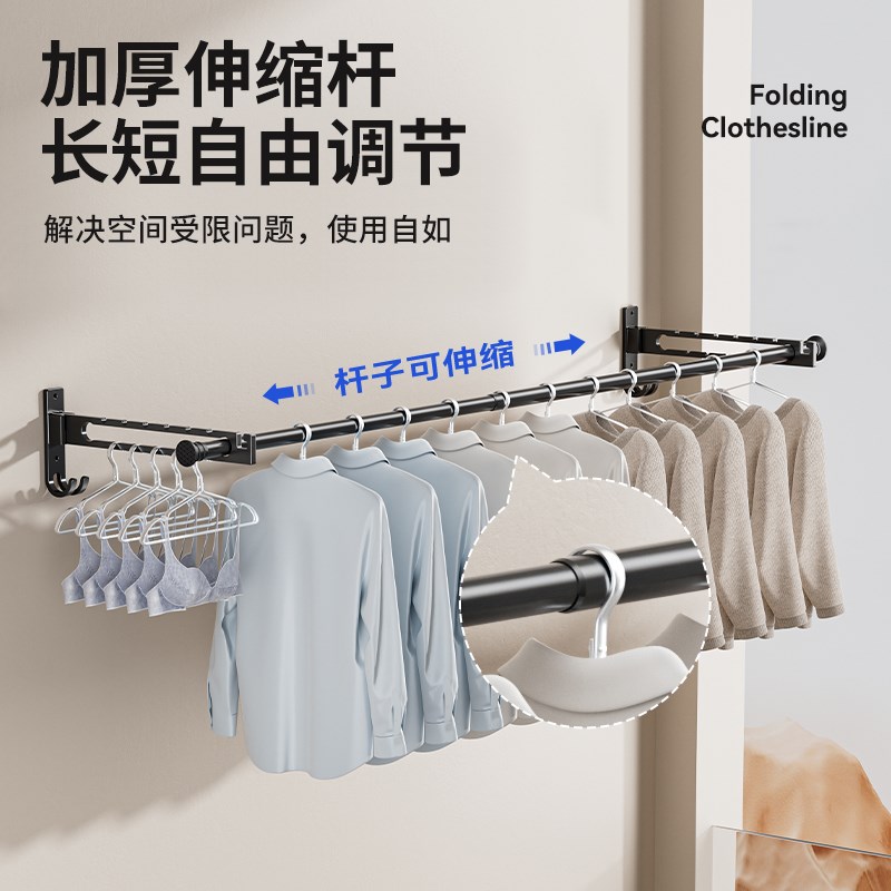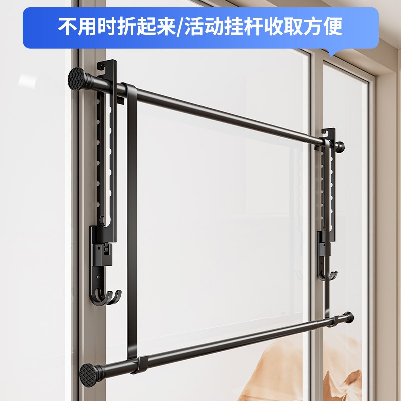 卧室飘窗窗户折叠晾衣架省空间阳台隐形收缩晾衣T神器免打孔壁挂