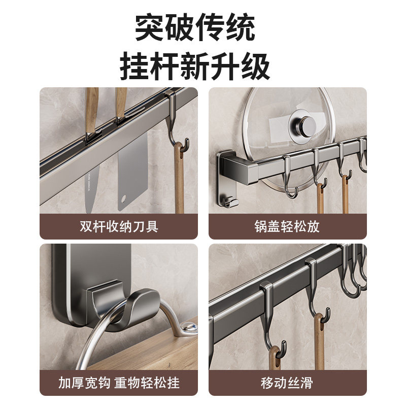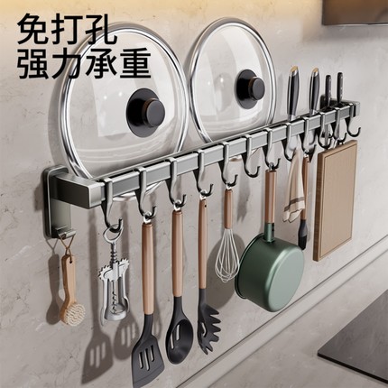 厨房挂钩免打孔挂杆锅勺子铲子挂架多功能壁挂式可拆卸收纳置物架