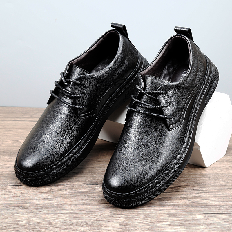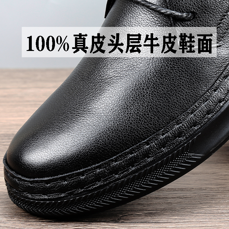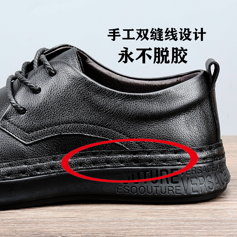 外贸男鞋真皮系带男士商务休闲皮鞋春秋季软底手工缝线透气爸爸鞋