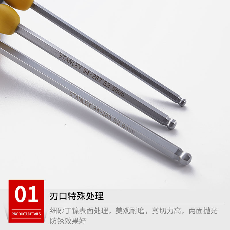 STANLEY/史丹利公制T型球形内六角扳手球头带把手2~8mm