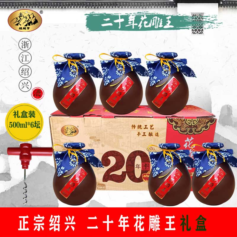 顺丰包邮 绍越亨绍兴黄酒陈年20年花雕王酒整箱礼盒坛装500ml*6瓶
