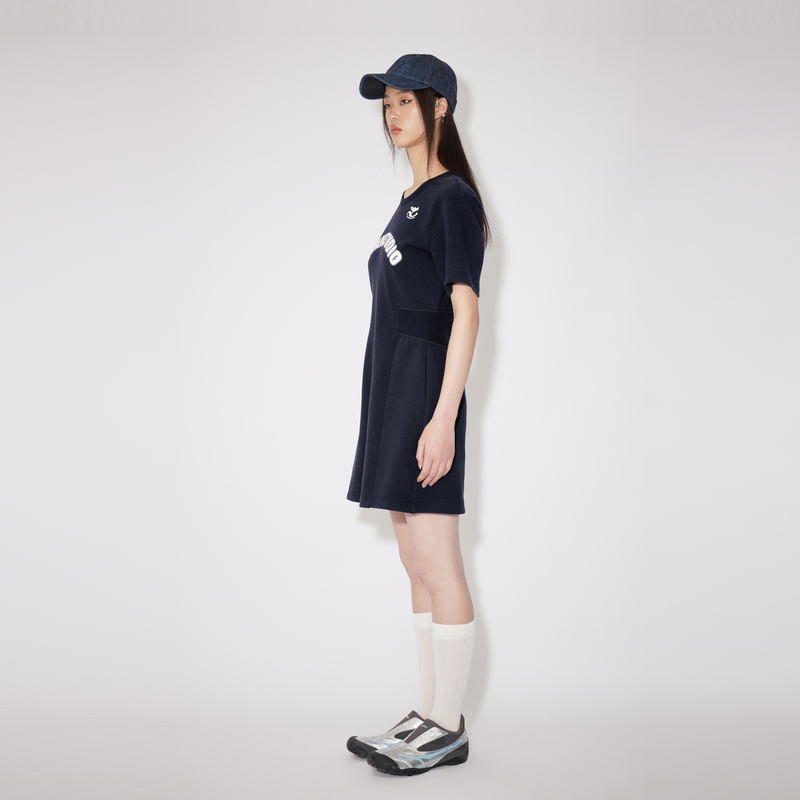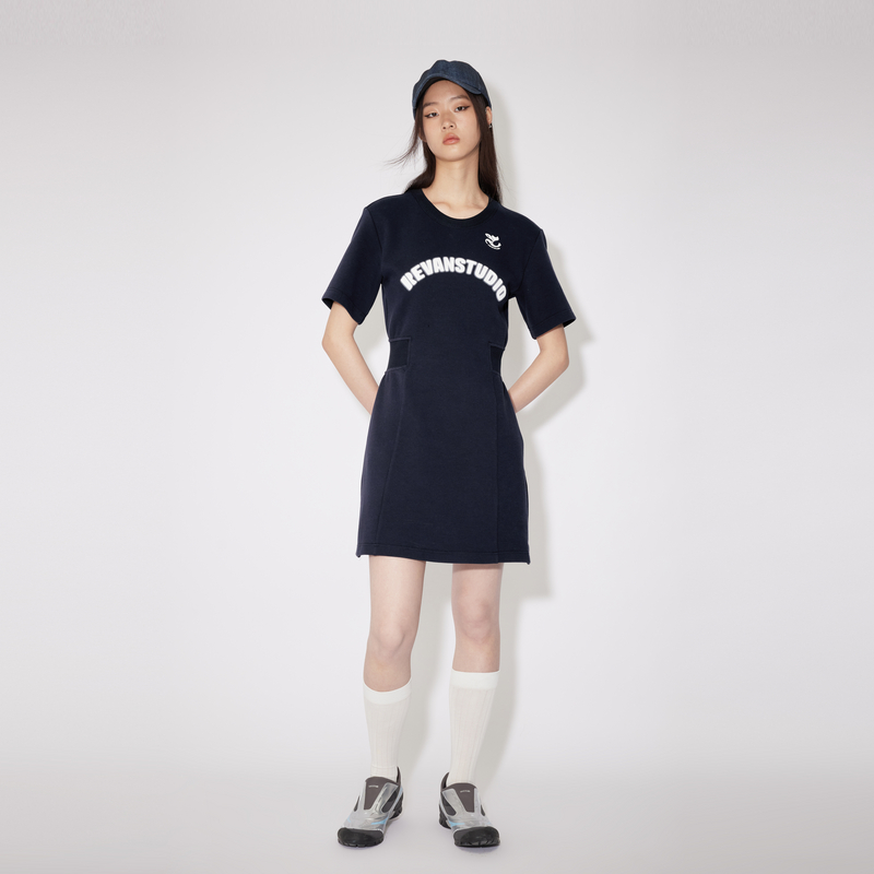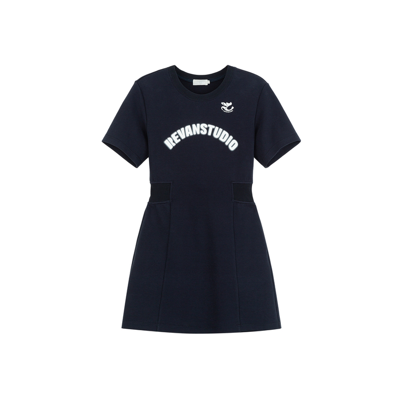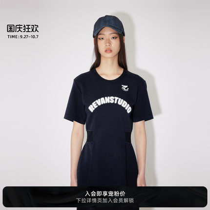 REVAN芮范奥莱2024夏季设计师款质感藏青收腰连衣裙RM31101363