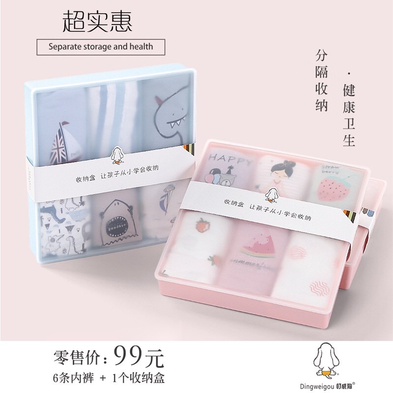 十六家儿童纯棉小内裤6条收纳盒