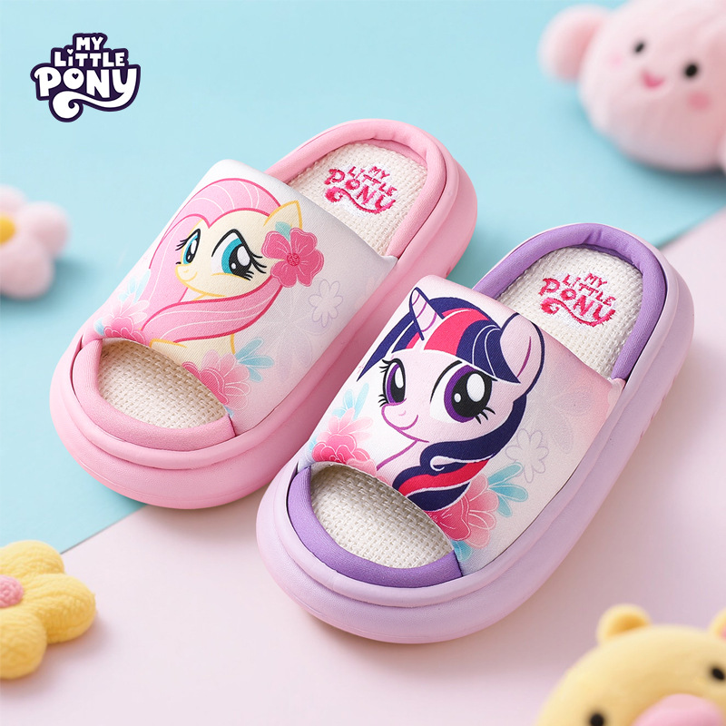 小马宝莉亲子亚麻棉拖鞋秋冬居家地板公主女童女孩子透气防臭静音