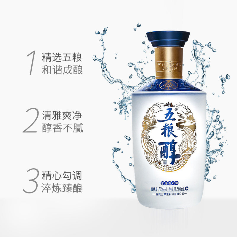 五粮液五粮醇 醇香商务蓝52度浓香型白酒500ml单瓶优级酒