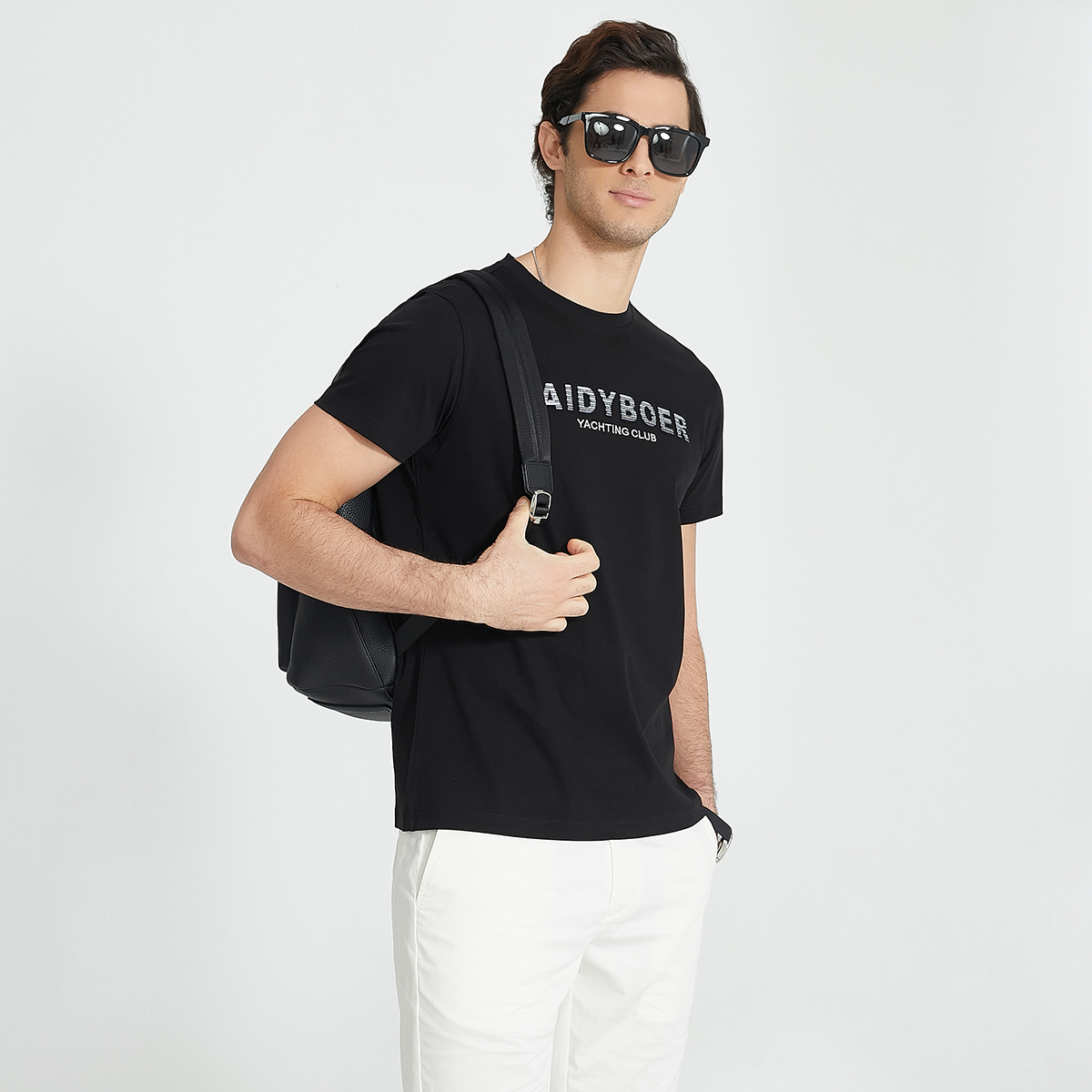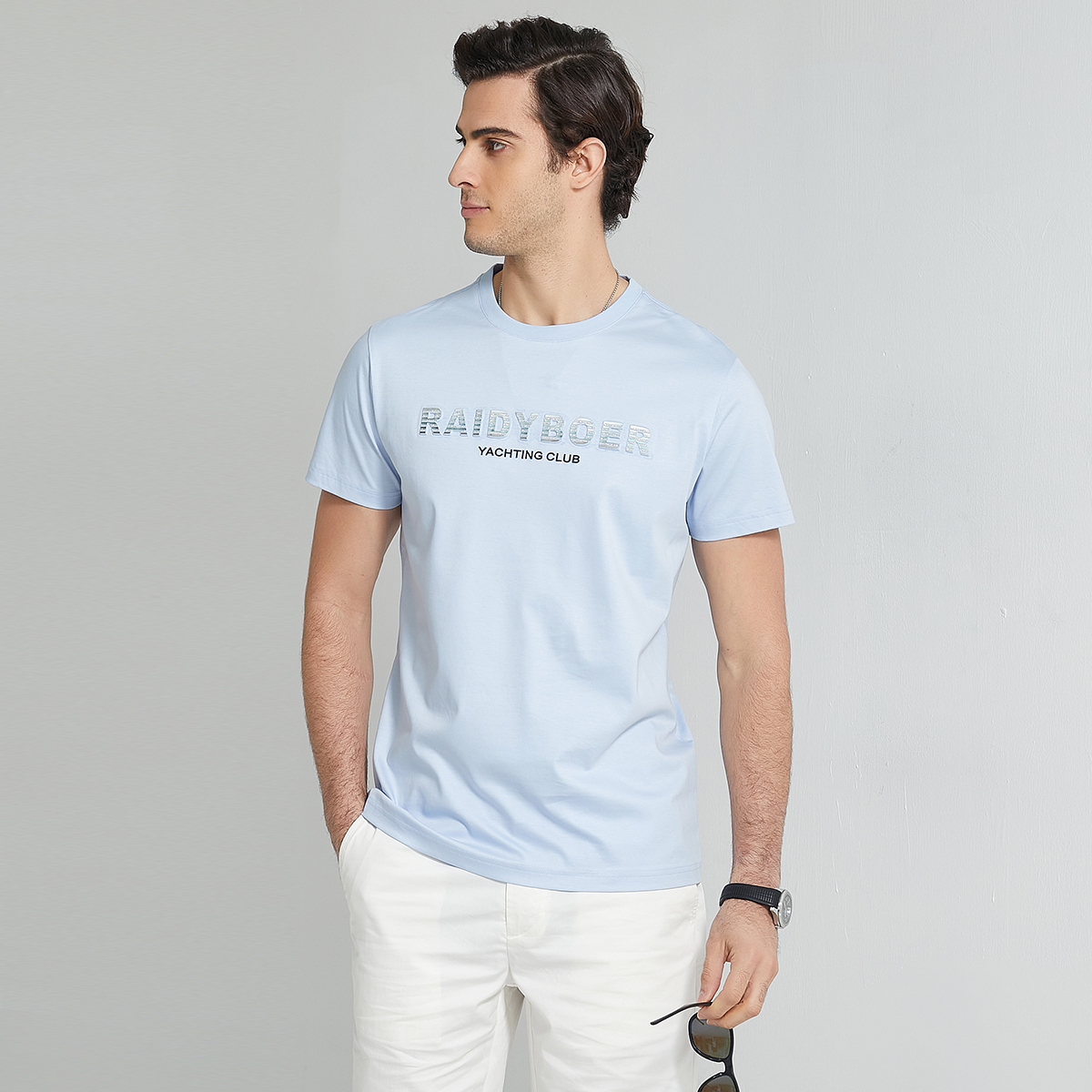 雷迪波尔男装短袖T恤夏季新品刺绣纯棉透气修身圆领休闲薄打底衫