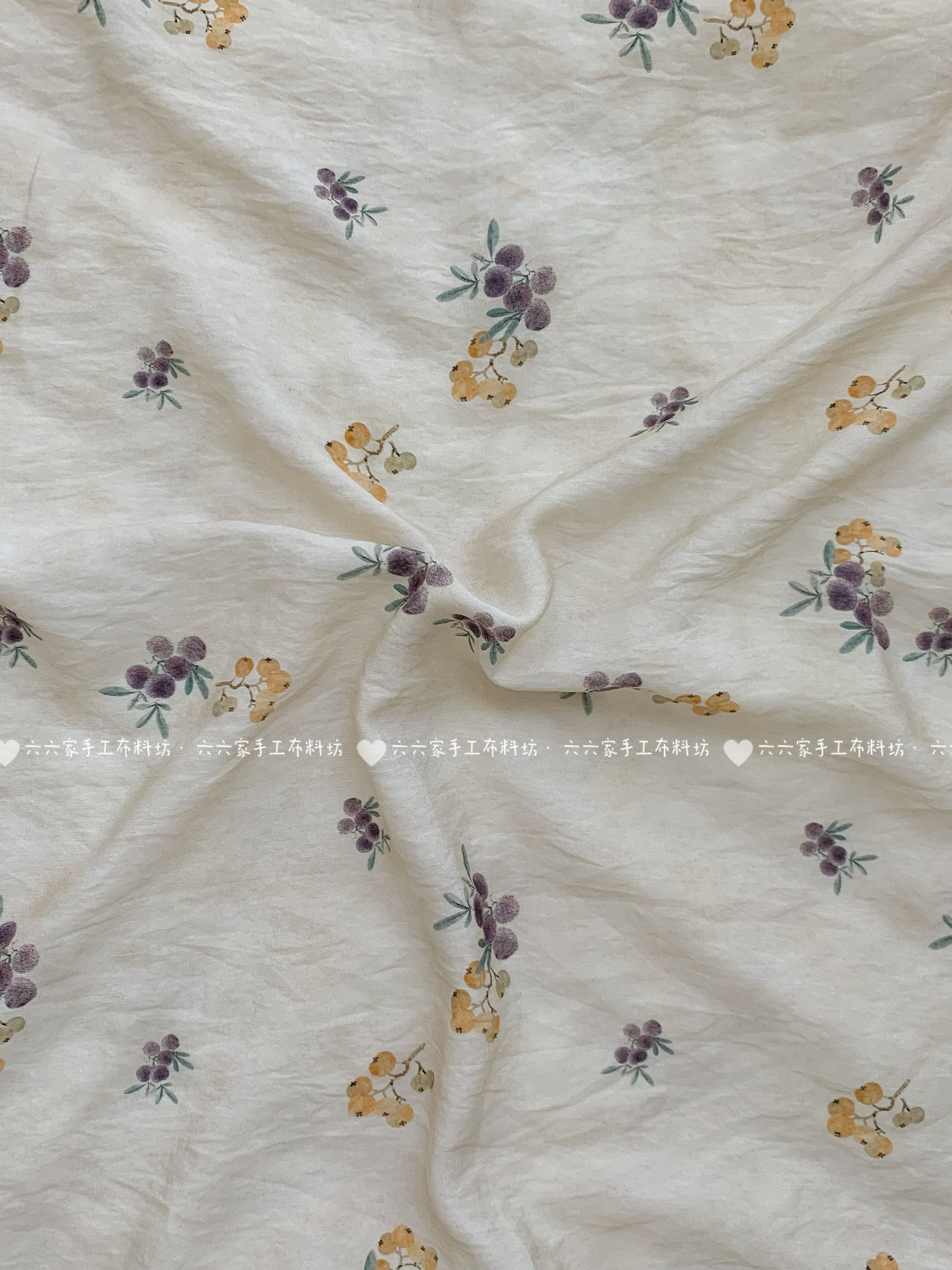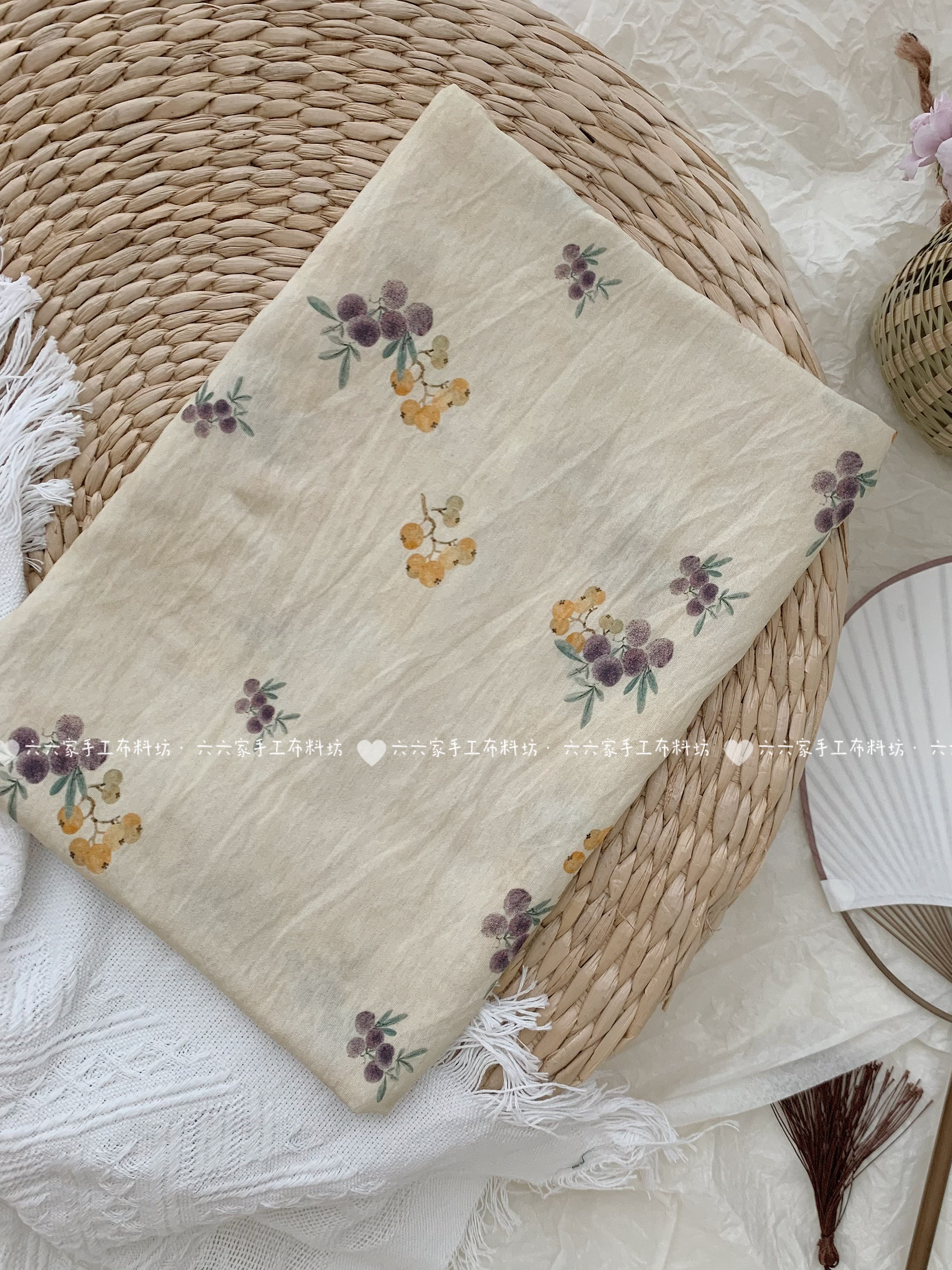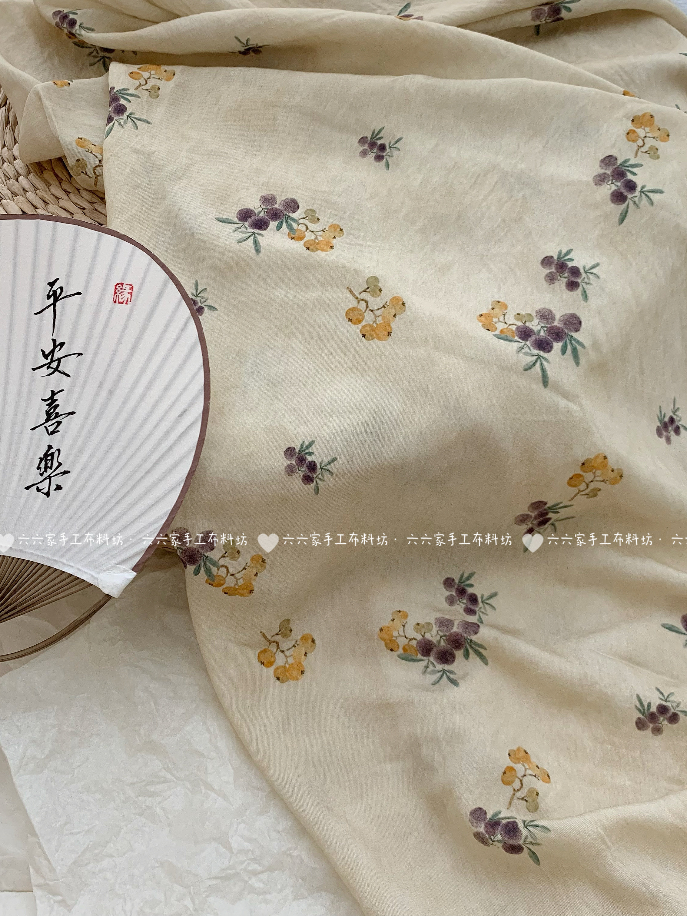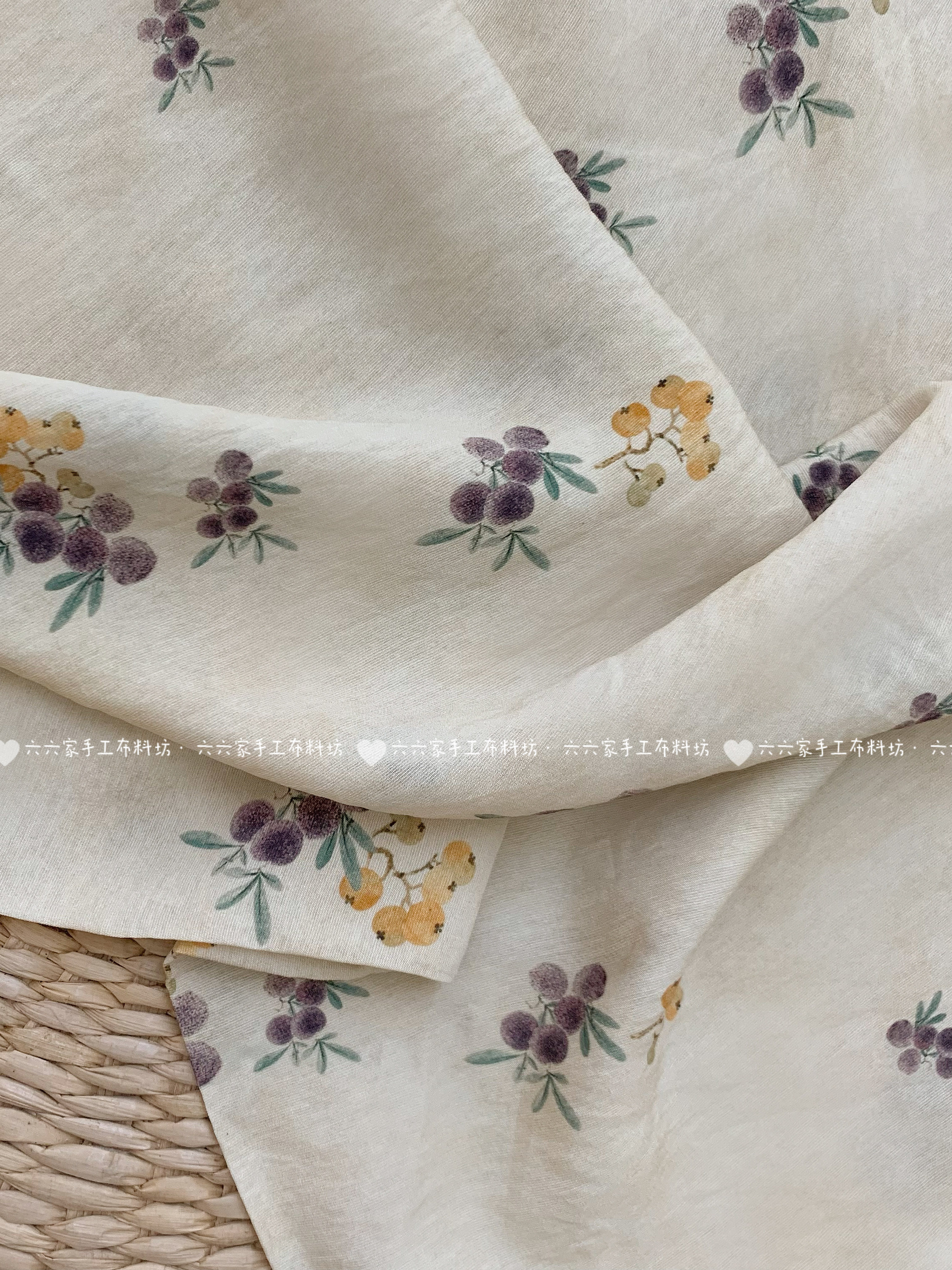 天丝麻数码印花面料中国风小蓝莓旗袍连衣裙女装服装布料