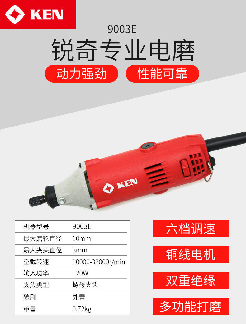 KEN锐奇电磨9025/9006/9066/9050B/9003E多功能电动磨头机内磨机