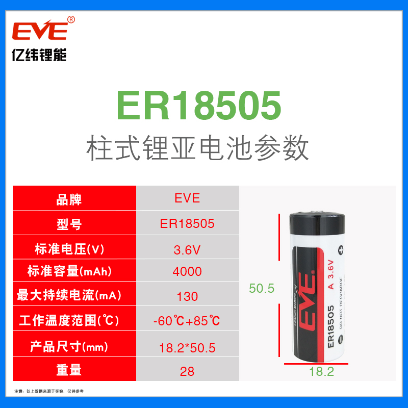 亿纬ER18505锂电池3.6V智能水表流量计物联网定位器PLC工控电池组