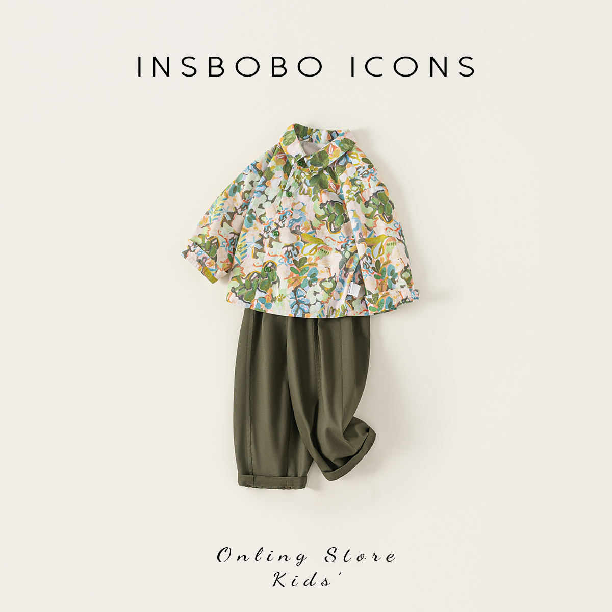 INSbobo男童套装2025秋季新款帅气男孩衣服春秋宝宝衬衫两件套潮