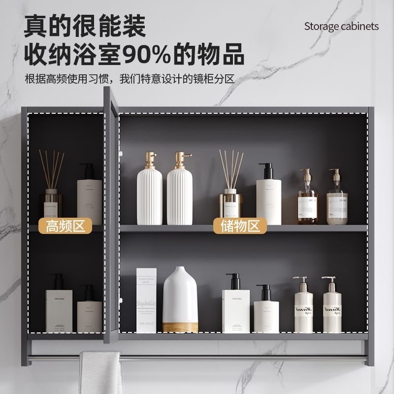 带毛巾杆单独镜柜化妆室防水小户型简约浴室智能镜除雾挂墙式镜箱