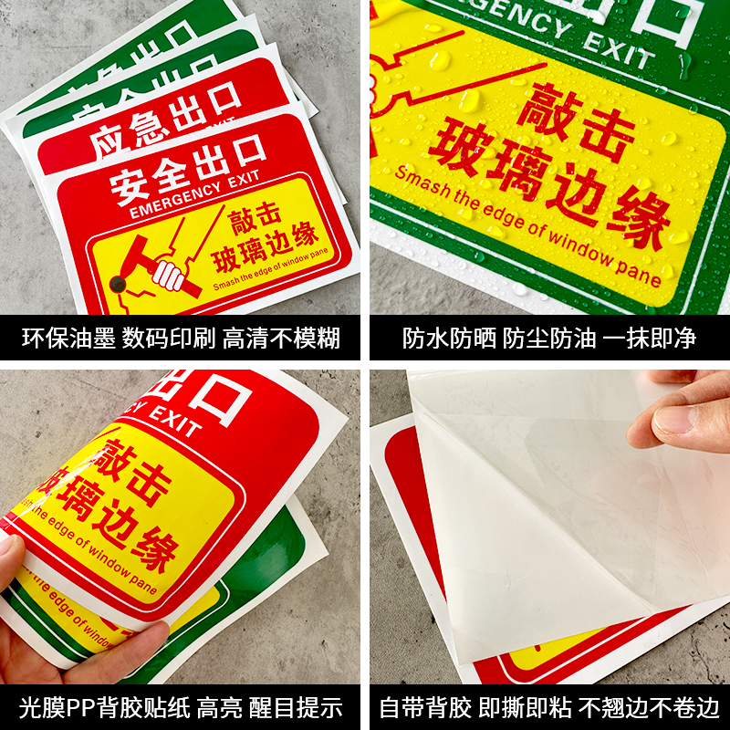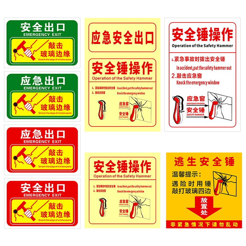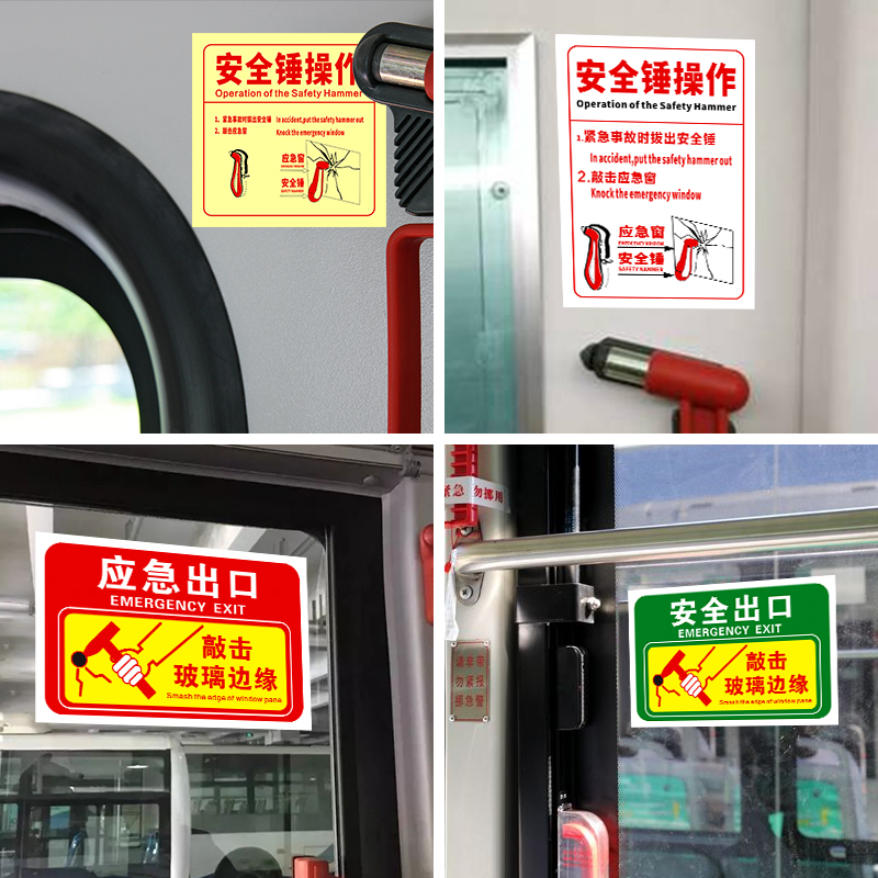 应急安全出口敲击玻璃边缘安全锤操作提示贴客车校车应急窗破窗器指示牌提示牌标识贴纸防水自粘标志牌定制