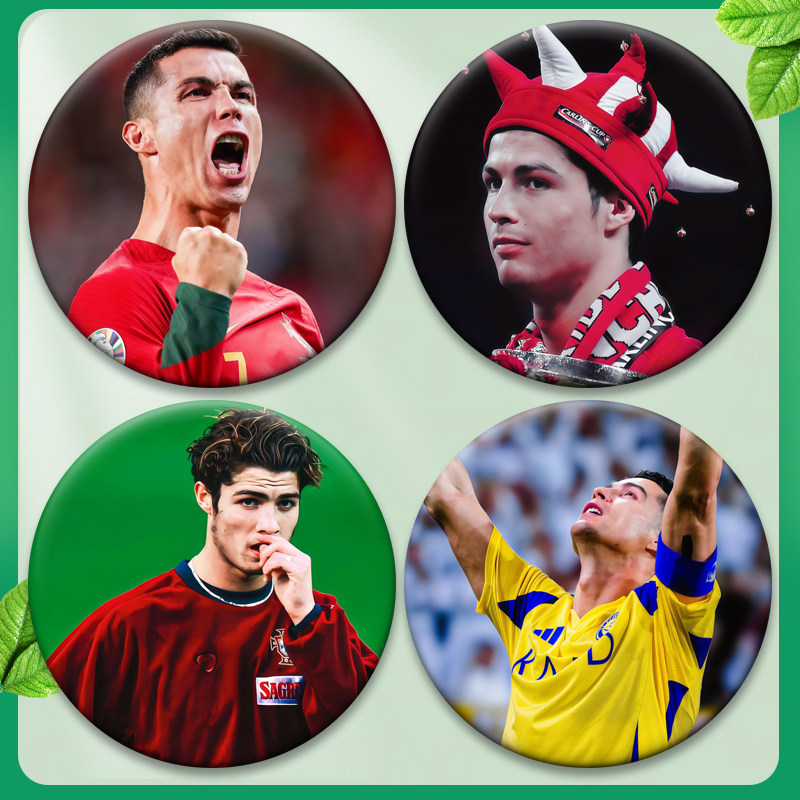 C罗罗纳尔多徽章痛包装饰吧唧马口铁圆形徽章钥匙扣书包挂件钥匙