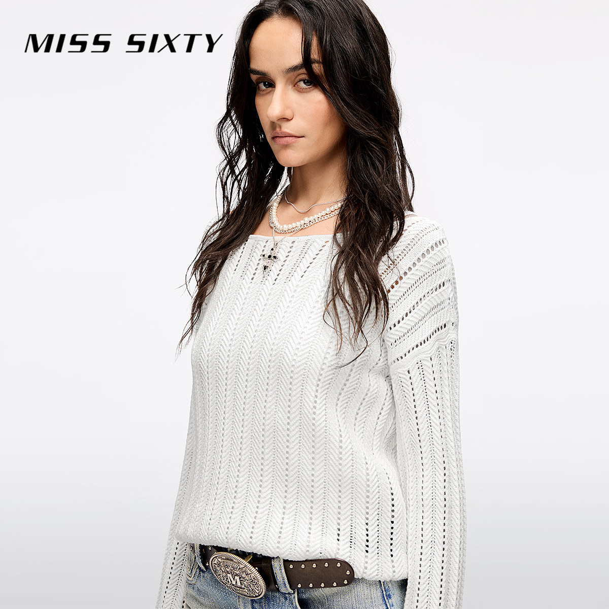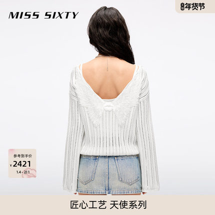 【天使系列】[露背]Miss Sixty25春秋针织衫女重工白色度假风毛衣