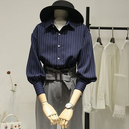 清仓捡漏品牌折扣店正品商场专柜撤柜复古港味条纹衬衫女宽松上衣