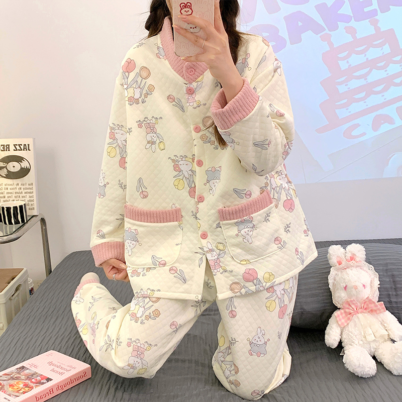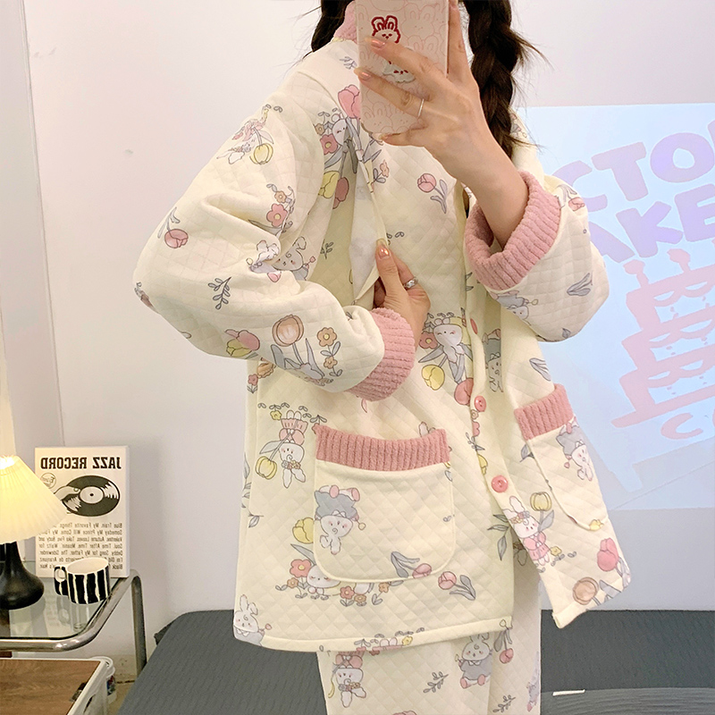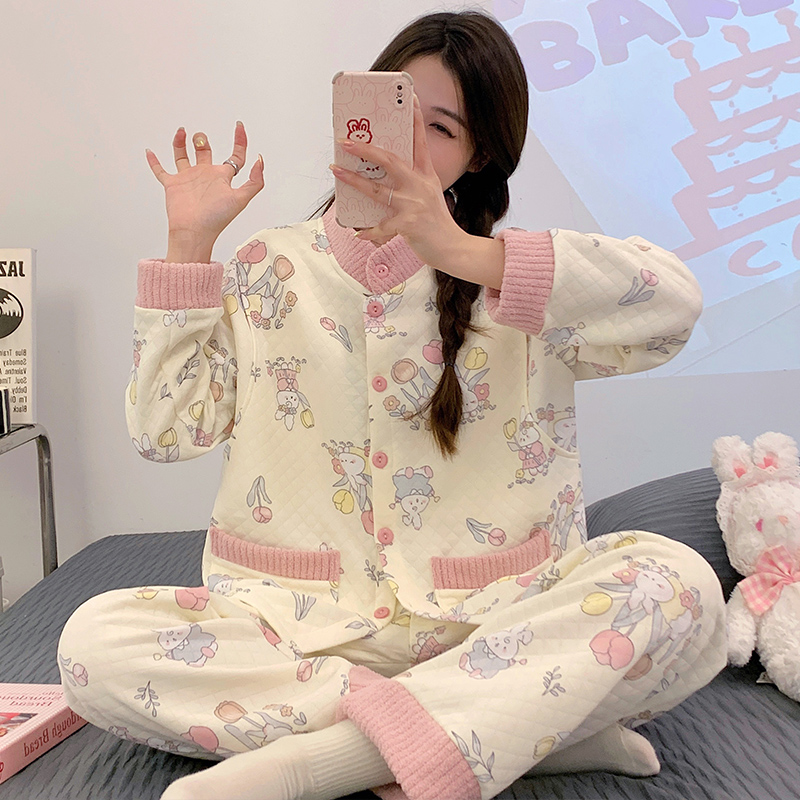 空气棉月子服秋冬季纯棉加厚保暖夹层产后产妇哺乳睡衣孕期哺乳期